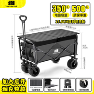 探险者(TAN XIAN ZHE)露营车坦克轮带桌板露营车户外折叠特大号快递车小拖车野餐拉车 350L 曜石黑后开坦克轮+桌板