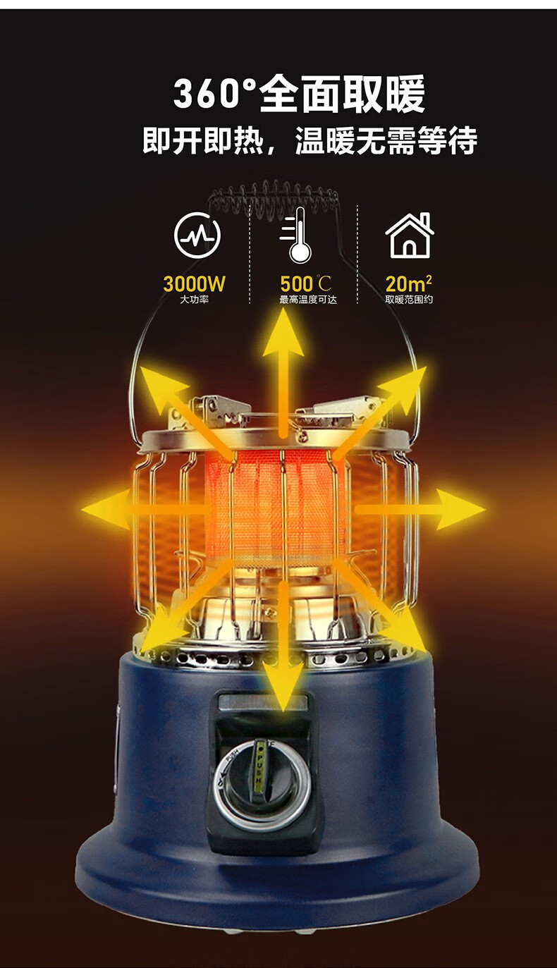 APG户外冰钓露营取暖炉烧烤炉煮茶烤火炉野炊液化气室内多功能炉具 阿帕奇3000CD三防+语音播报液化气款