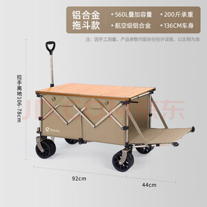 北欢bavay露营车带桌板手推车折叠野餐铝合金小拖车S14 560L 棕色-铝合金MAX+轨道桌板