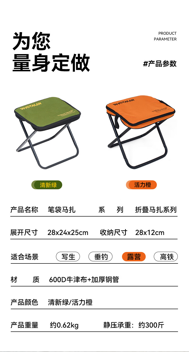沃特曼 户外折叠椅便携式休闲多功能小马扎超轻露营简约钓鱼写生手包凳 笔袋马扎【28x24x25cm】78208