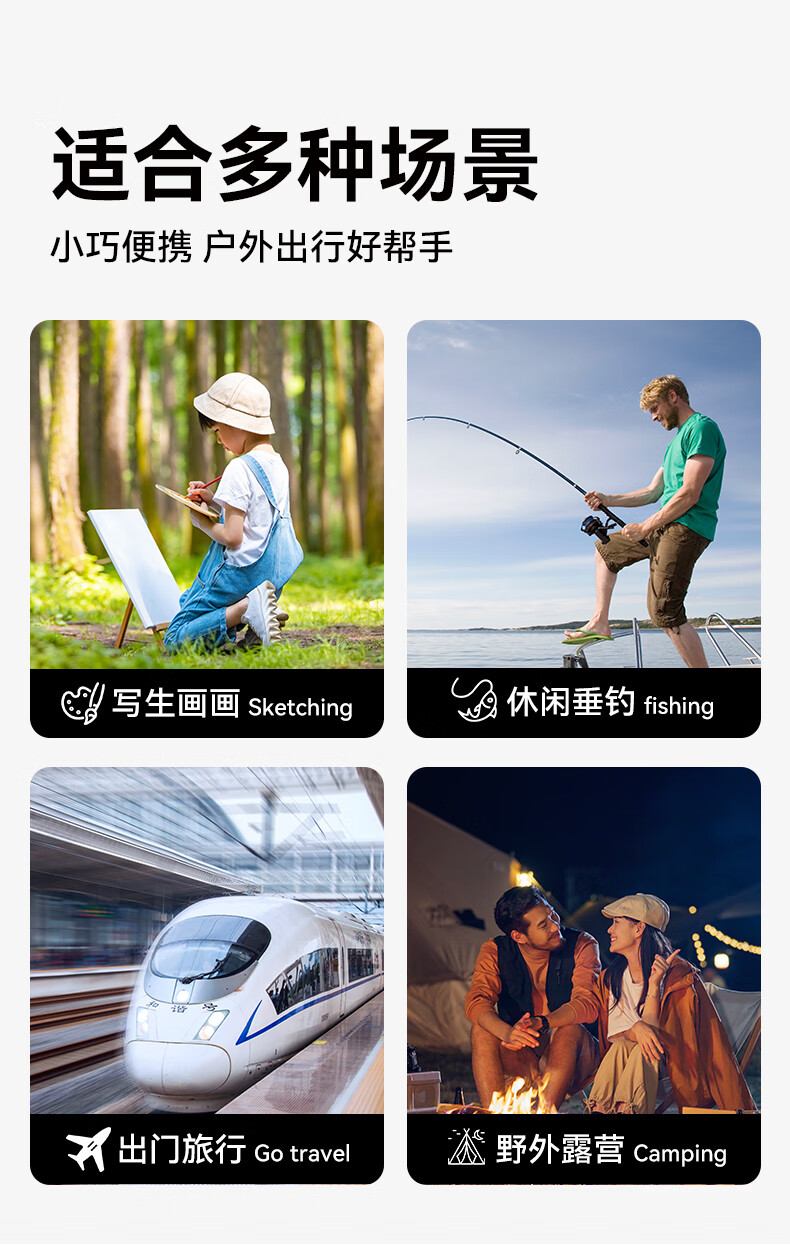 很便捷,出行随时随地可以休息,尤其是坐高铁没有座位真的挺方便的,收纳熟悉了就挺好收纳的,带出去也方便。