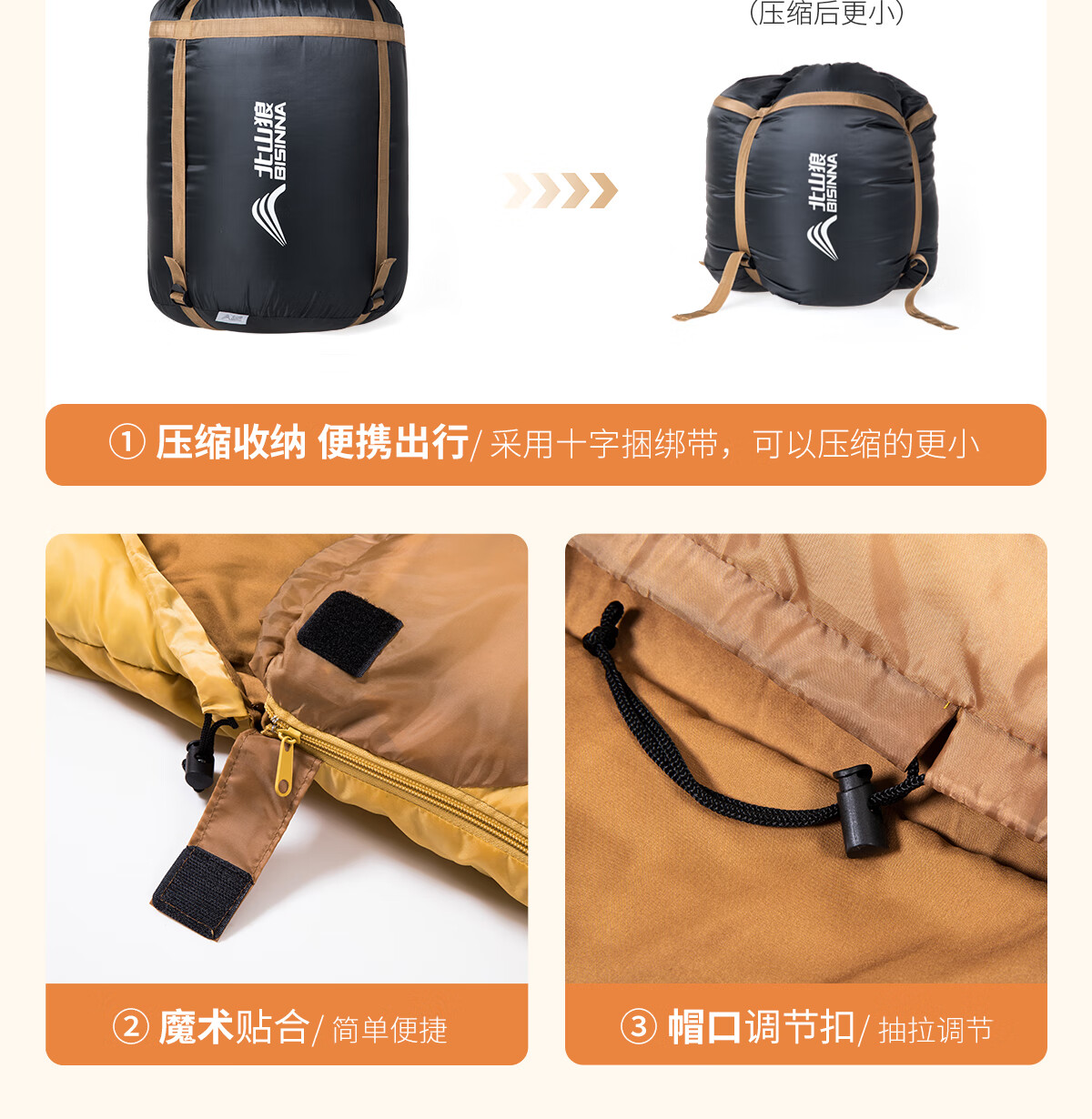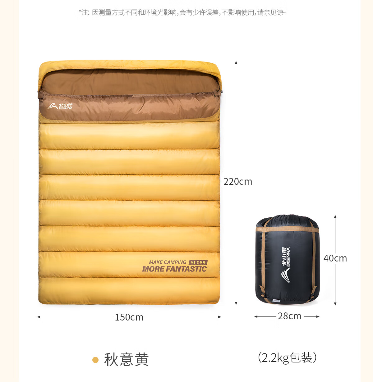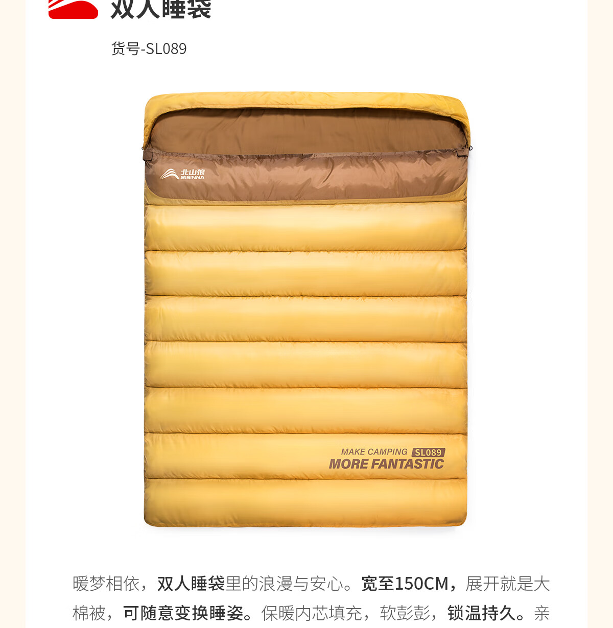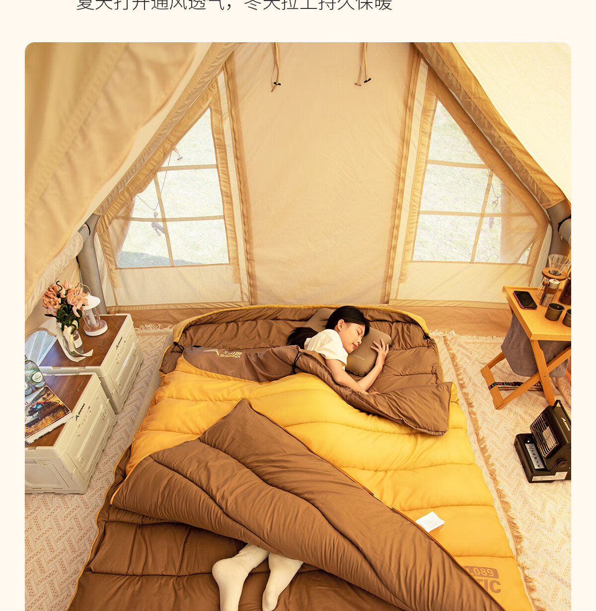 北山狼 双人睡袋四季加厚便携成人睡袋户外露营防寒可拆分睡袋 4.2kg桦木褐