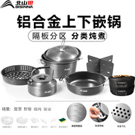 北山狼 露营炊具户外锅水壶煎锅便携野外野营餐具套锅锅具 【食品级铝合金B9】6-10人套锅