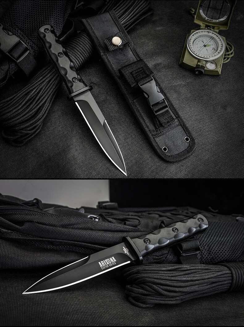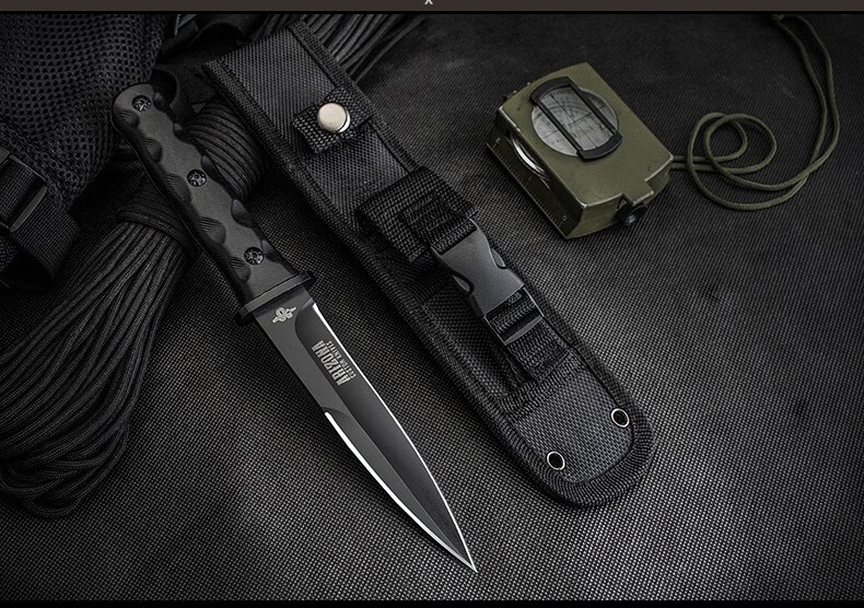 户外刀具多功能军1刀荒野求生刀防身器高硬度 229黑色+布套 5CR高硬度+二次开刃