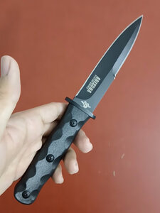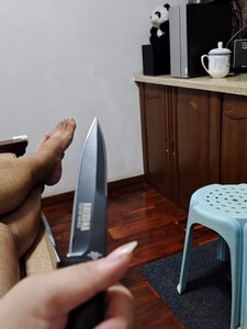 这宝贝拿在手上感觉有点沉,刀身不会太短,用手感觉了一下好锋利啊这点请有小朋友的注意一下了,假如太着急需要时间是的过三四天才到货急的朋友就要考虑好,再提一点就是刀很漂亮我很喜欢,快递也给力四天刚好在礼拜六到,这是我想不到的。