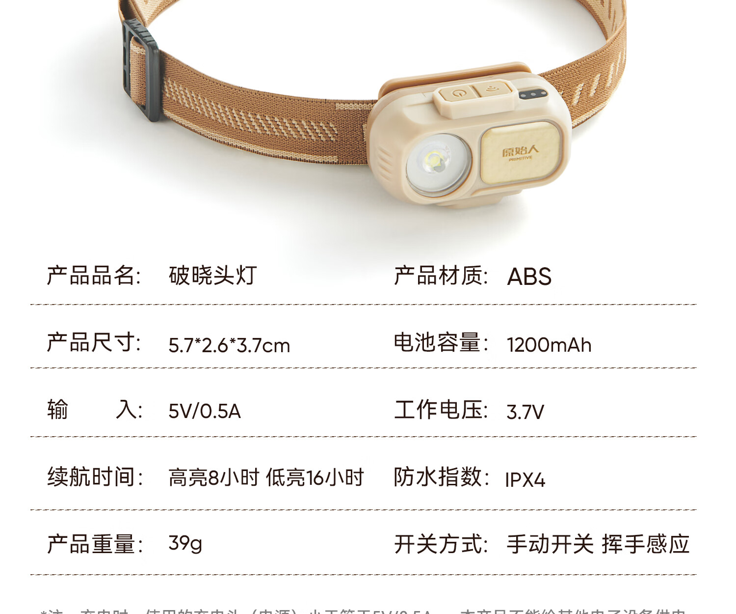 原始人头灯是最符合我需要的,晚上去菜地摘菜,1200毫安的电池够大,重量也轻巧,只有散射光也适合看地面,价格也便宜,好评!