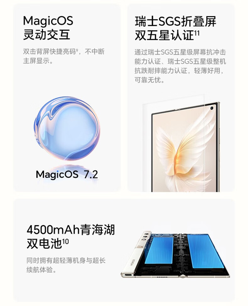荣耀现货速发 V Purse展机 荣耀V超长续航折叠国行5G通 山茶金展机 16+512