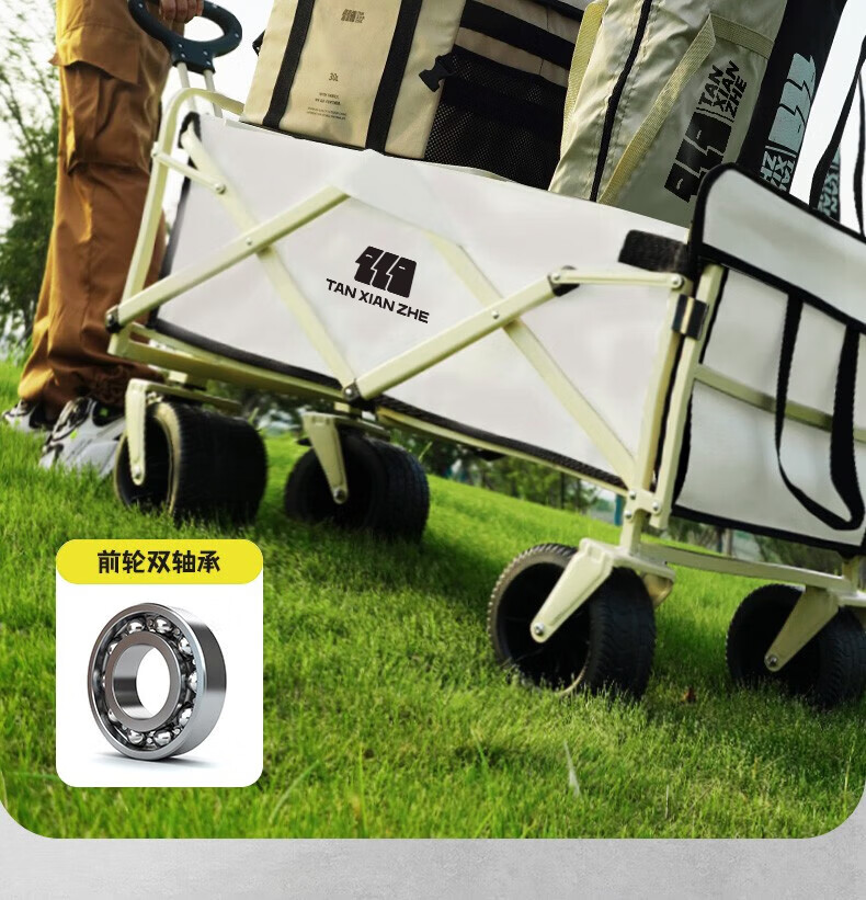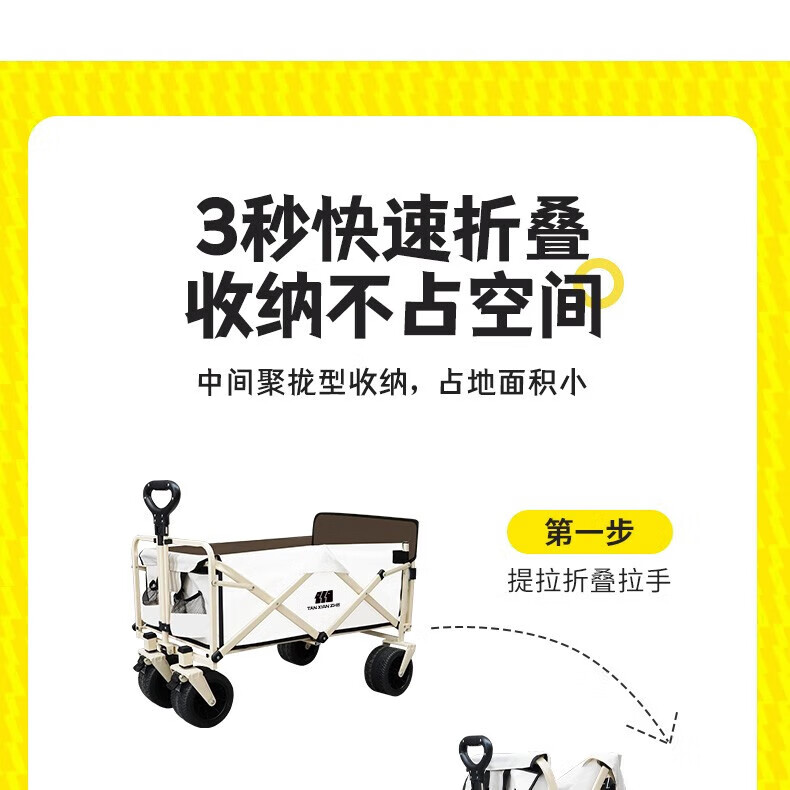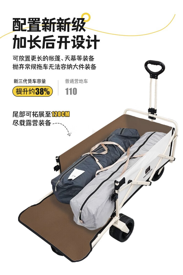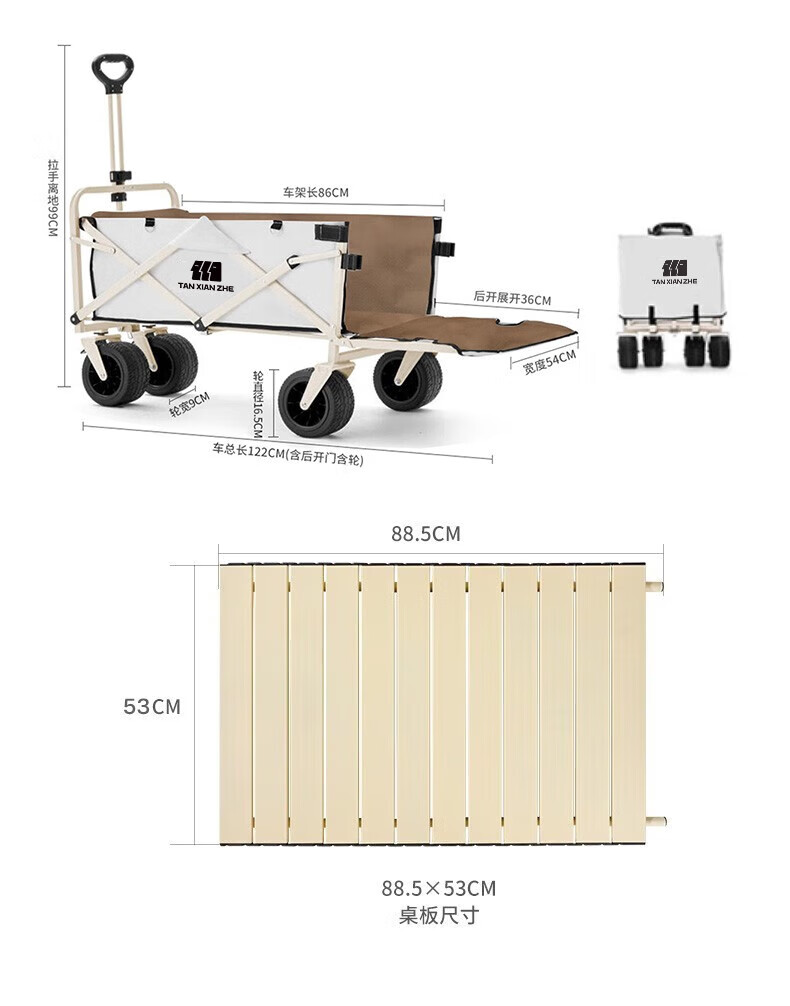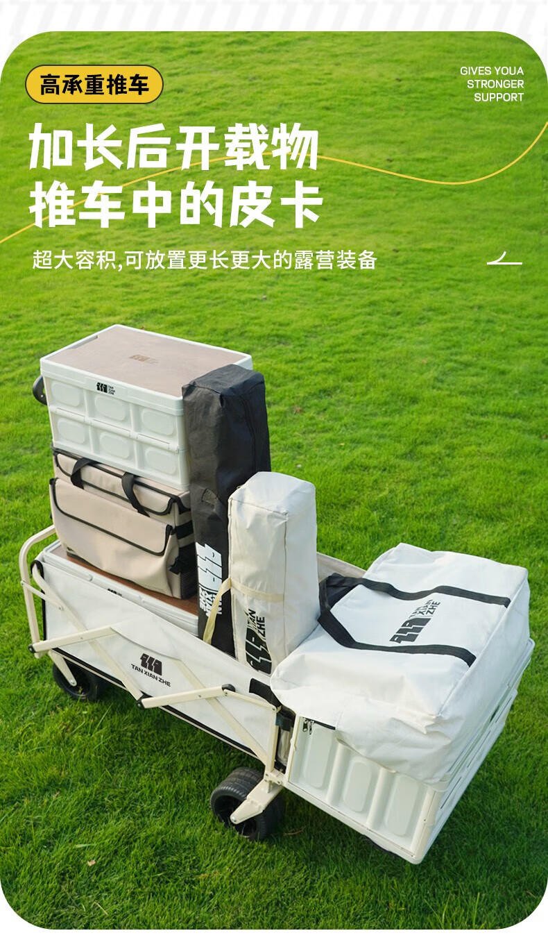 探险者(TAN XIAN ZHE)露营车坦克轮带桌板露营车户外折叠特大号快递车小拖车野餐拉车 150L 淡栗棕实心静音轮+桌板