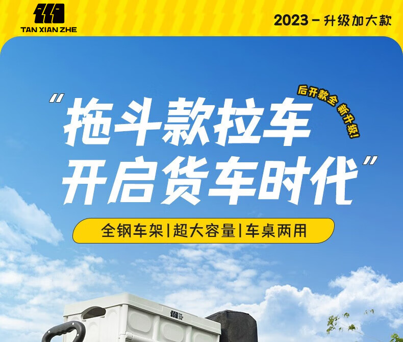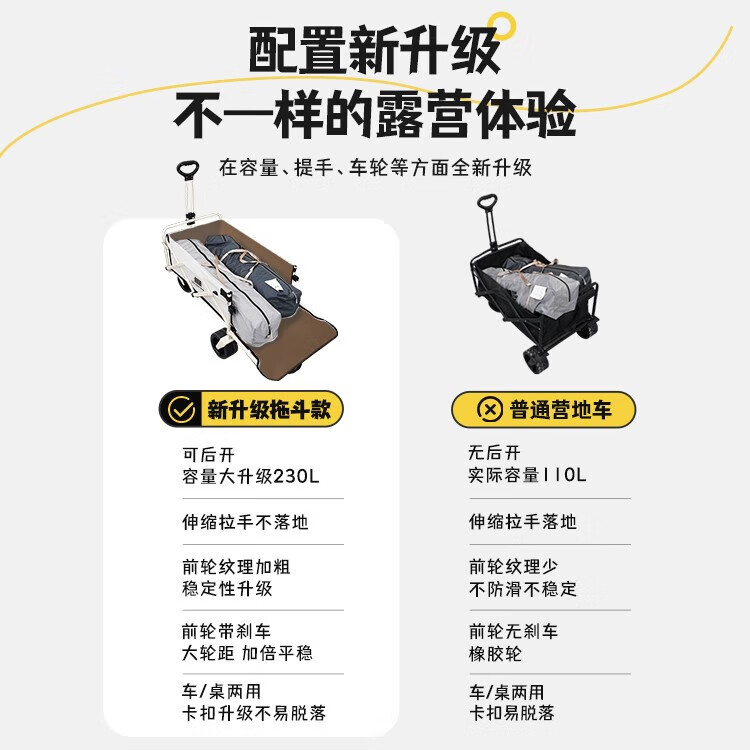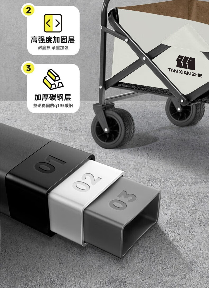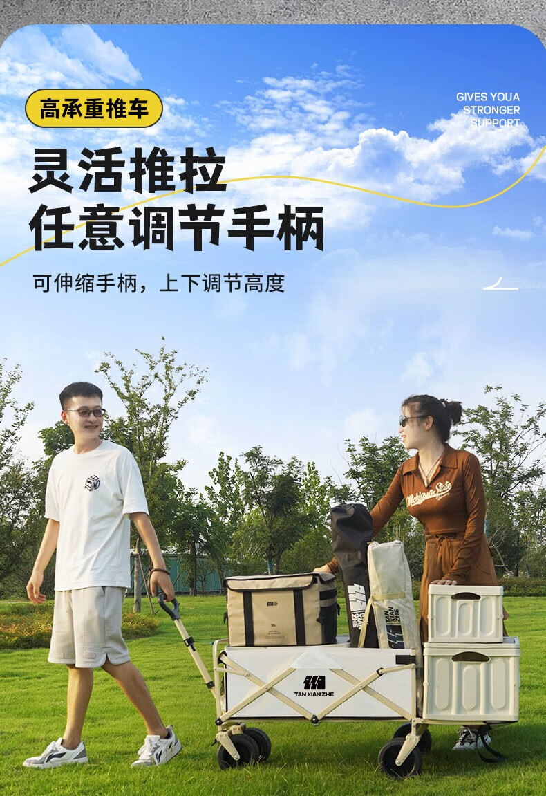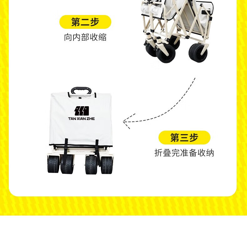 探险者(TAN XIAN ZHE)露营车坦克轮带桌板露营车户外折叠特大号快递车小拖车野餐拉车 150L 淡栗棕实心静音轮+桌板