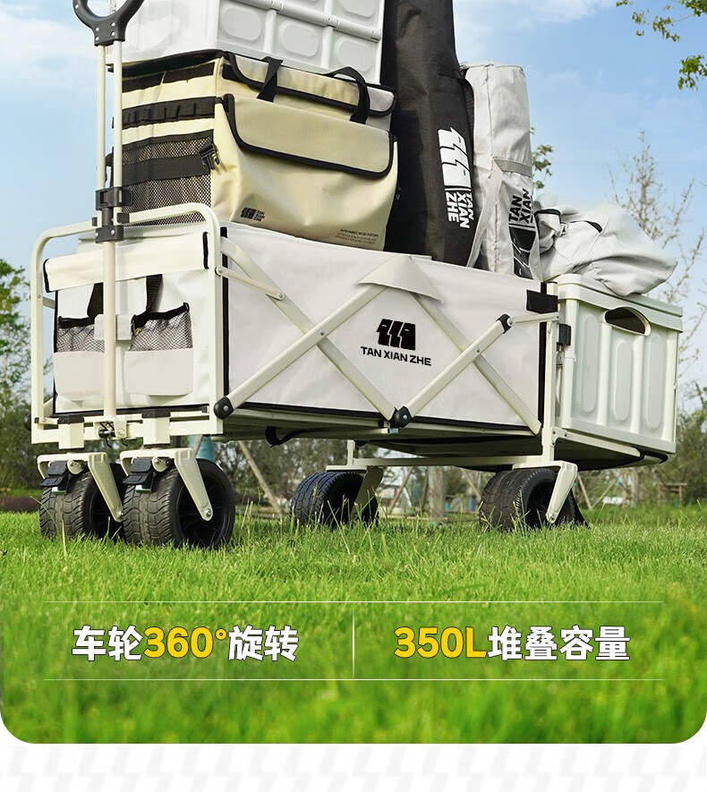 探险者露营车折叠推车户外露营儿童小推车营地车拉年货小拖车折叠小拉车 350L 曜石黑-双刹坦克轮+轮宽10CM