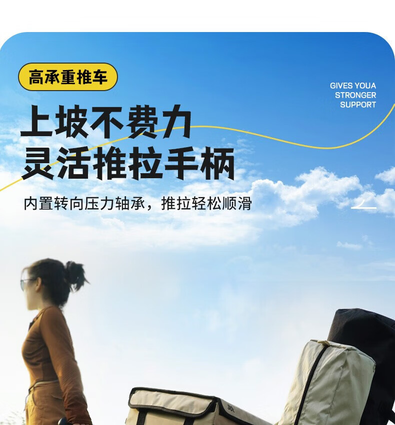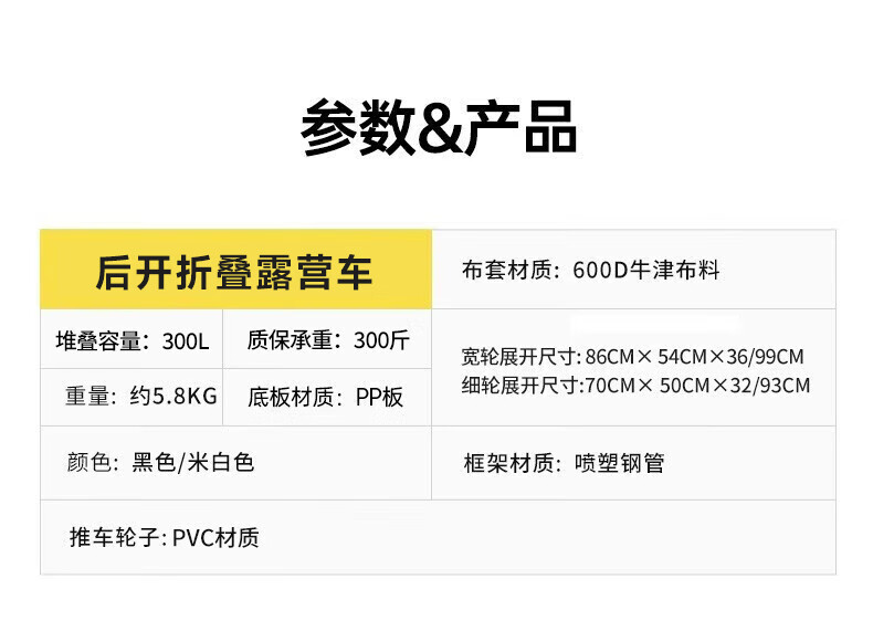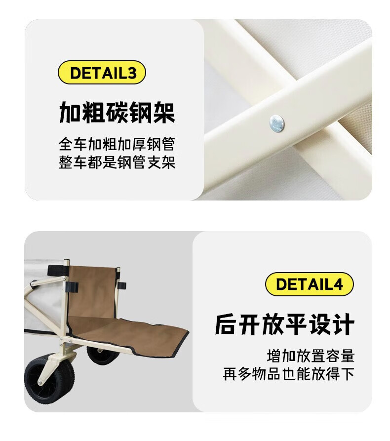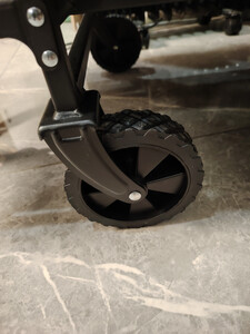 没有任何气味,看图片上车轮不大,实际上看到震撼我了,真不愧是坦克轮,很厚实够大,整体车身质量不错,有点小重,特别买的拖车款,方便放长帐篷。在推车后退时候,两个轮子会容易打架,顺着拉车比较好。