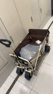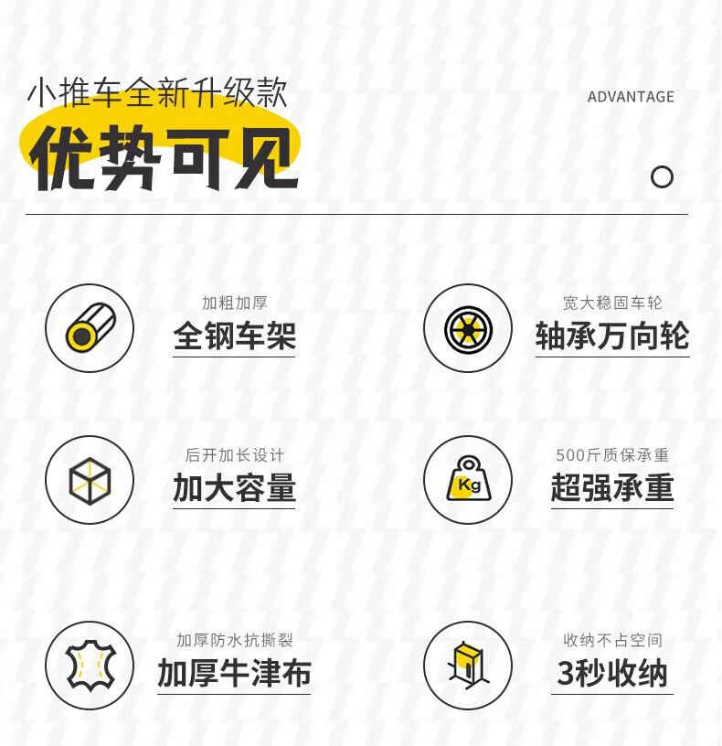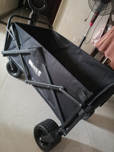 第一次买小拖车,价格不贵,物流比较快。 收到第一时间打开,大小和预想的差不多,设计和材质中规中矩吧。一分价钱一分货,先将就着用。 不好的一点是拉手有明显磨损痕迹,不确定是不是二次销售。 用几次后再来追评。