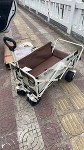趁着大促下手了一直想买的露营车🤣拿快递当时就拆了车装了一车快递拖着😆😆后面可以打开真的很棒,修狗狗在上面拖回家超开心!!