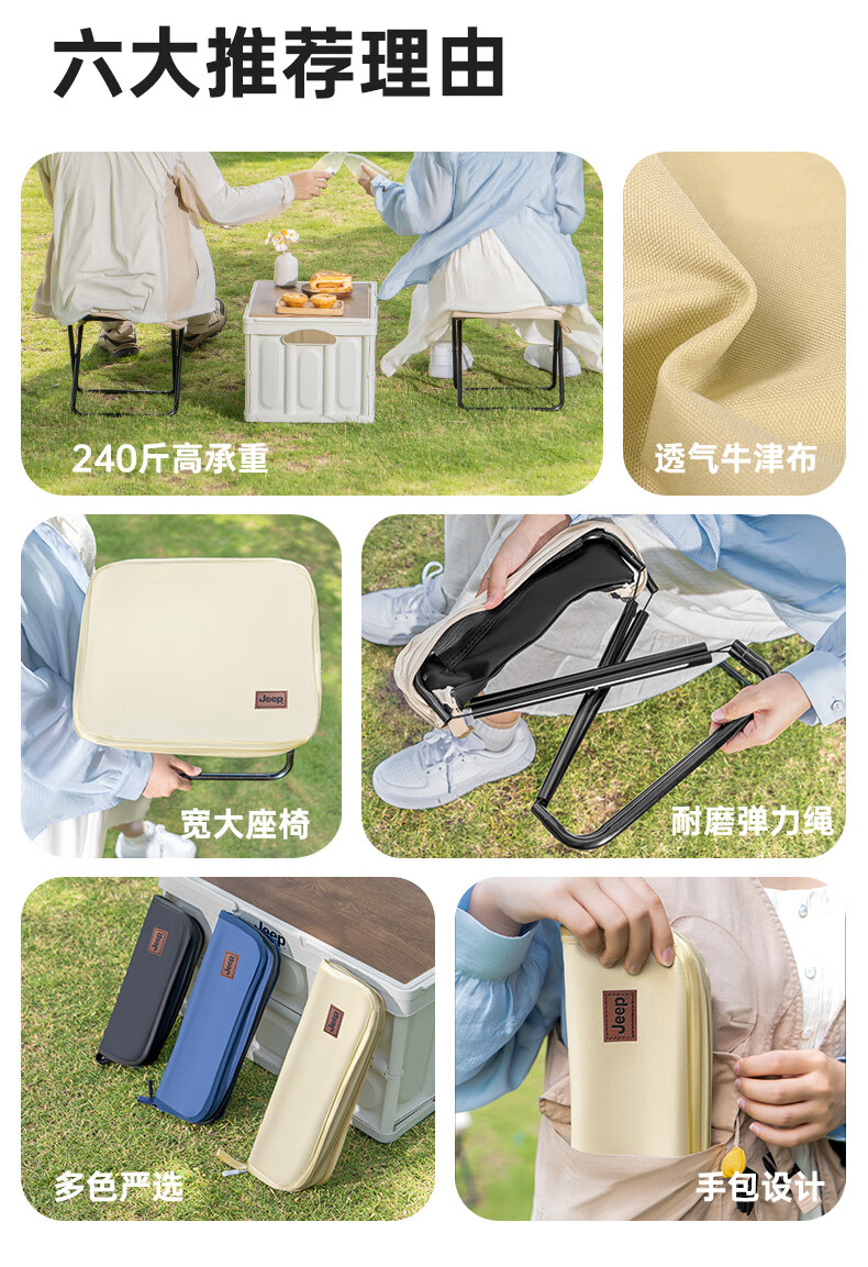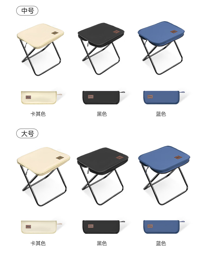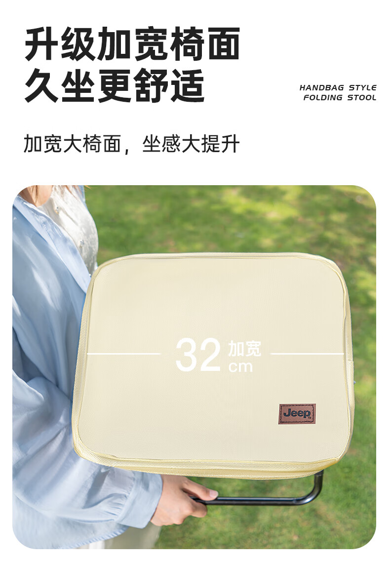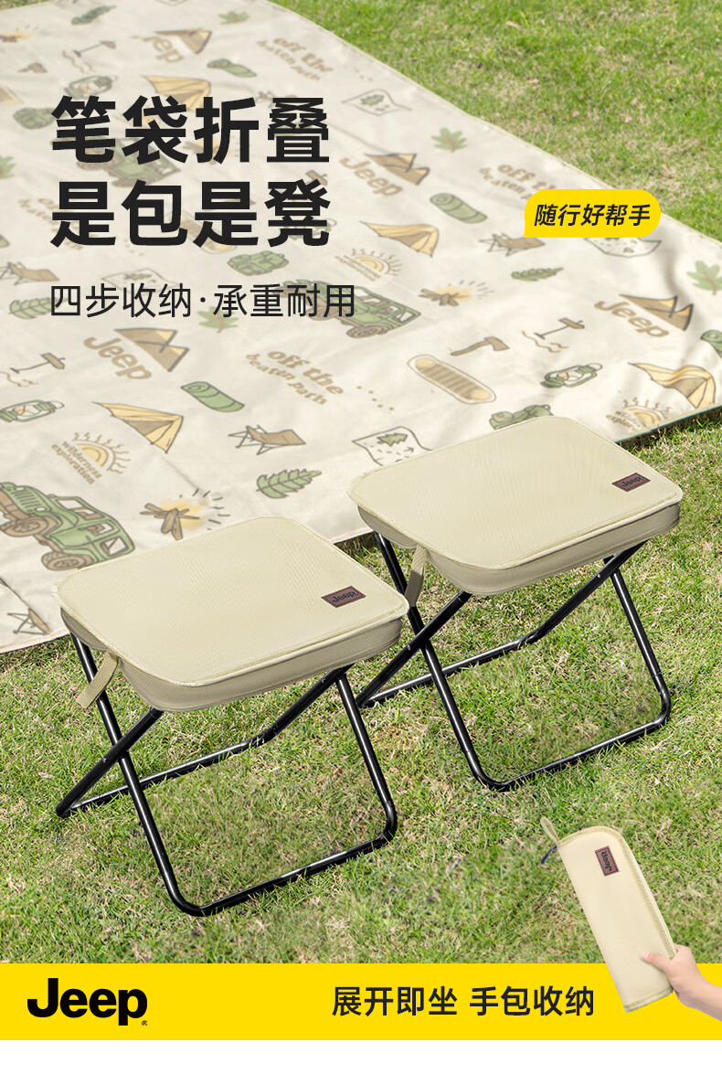 JEEP吉普折叠凳户外便携式小凳子椅子钓鱼板凳笔袋马扎高铁上火车排队 中号【卡其色】双层座面