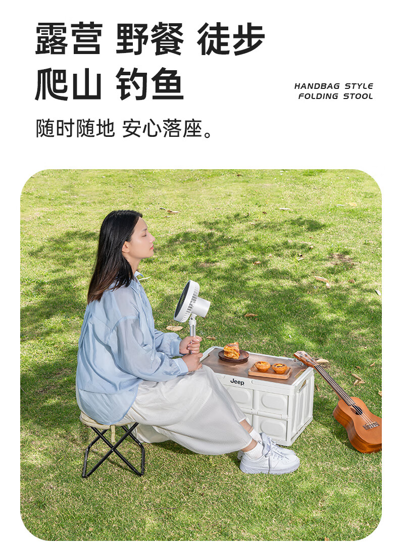 JEEP便携折叠凳露营椅子户外便携桌椅野餐野外野营钓鱼写生折叠小椅子 背包凳大号 灰色