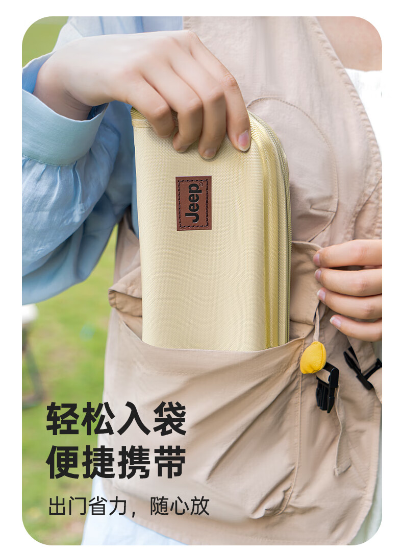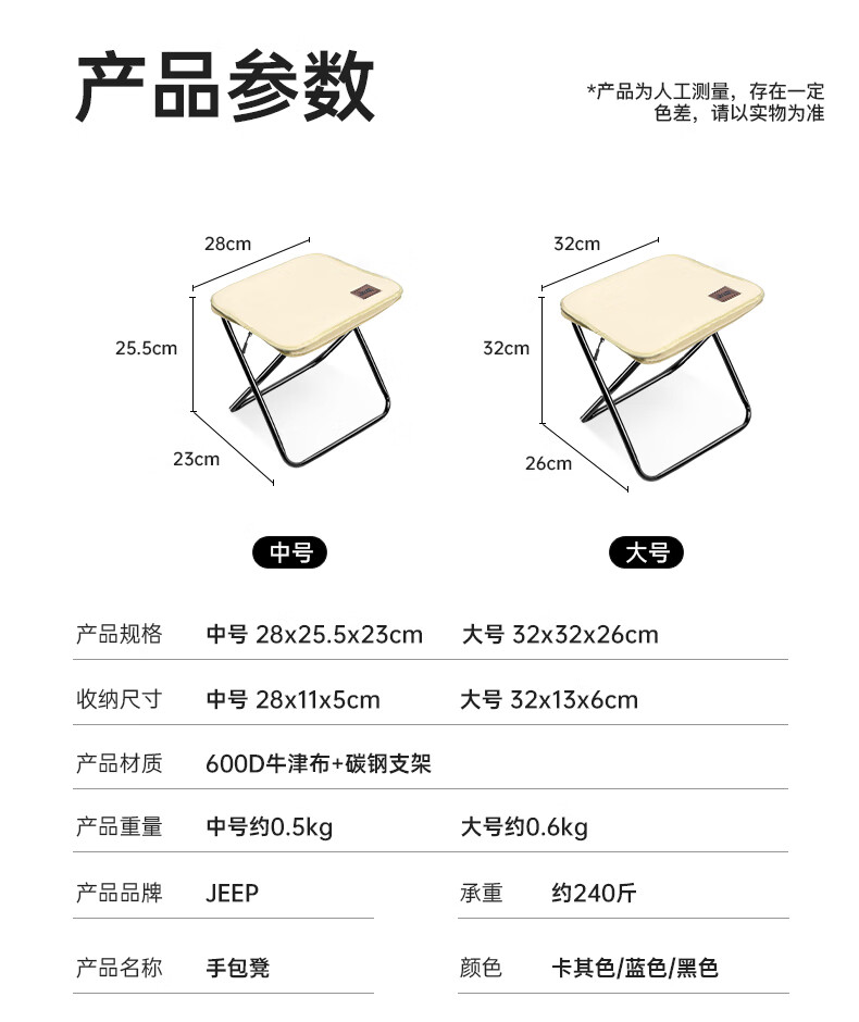 是jeep正品,实物到手拿着不会感觉重,比较轻巧,特意带出去使用了几次才来评价。本人体重160,坐上去没有明显的塌感,承重这块还是可以的,暑假出去旅游几天完全够用。