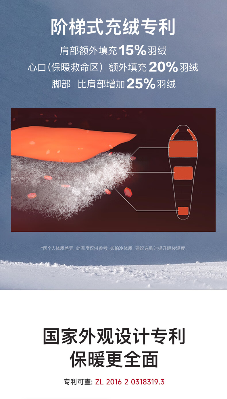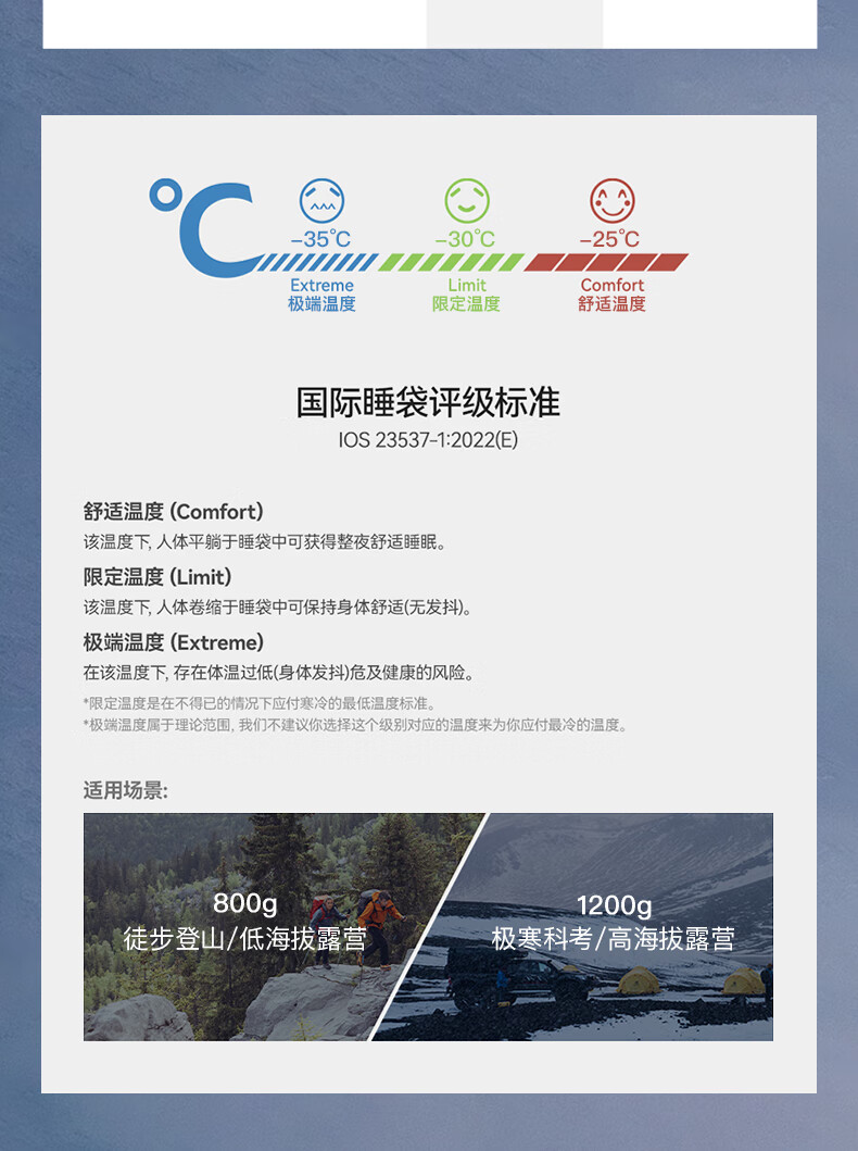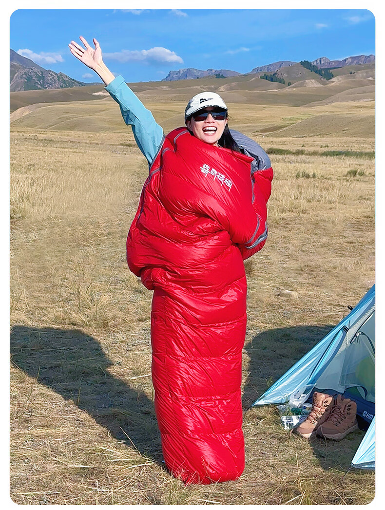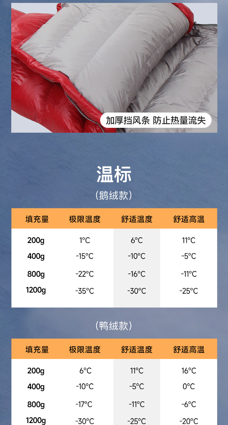 睡着很舒服,不会有被束缚的感觉,有一点动物的味道,不仔细闻,闻不出来,至于适合温度范围,我觉的零下10度以内是没有问题的。