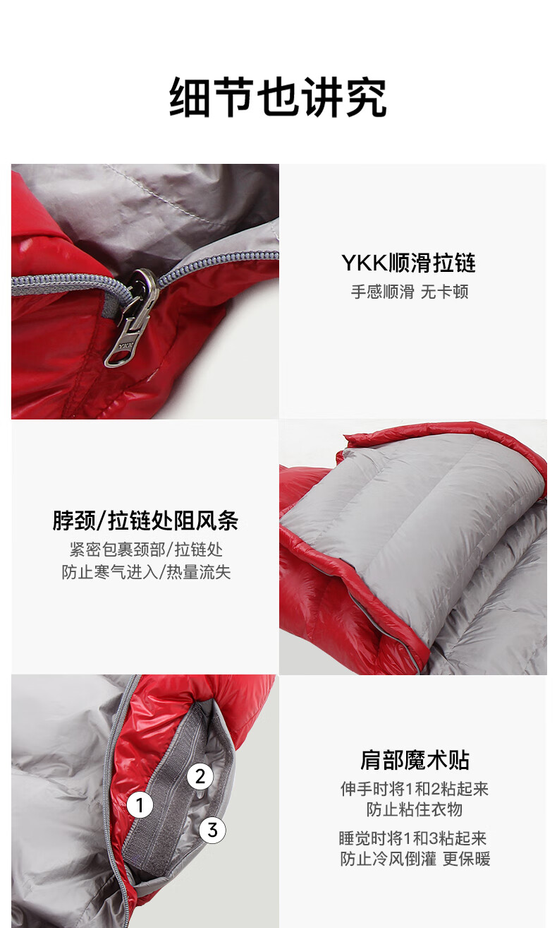 1公斤的睡袋,外表跑绒现象,线脚还有细节没有处理好,建议大家买800克充容量的。