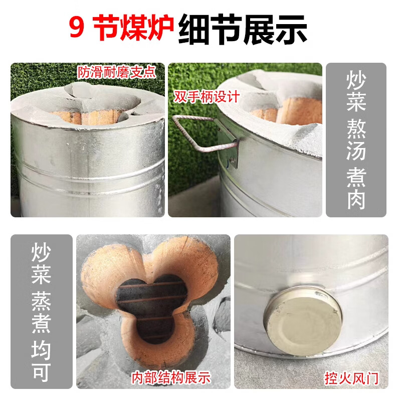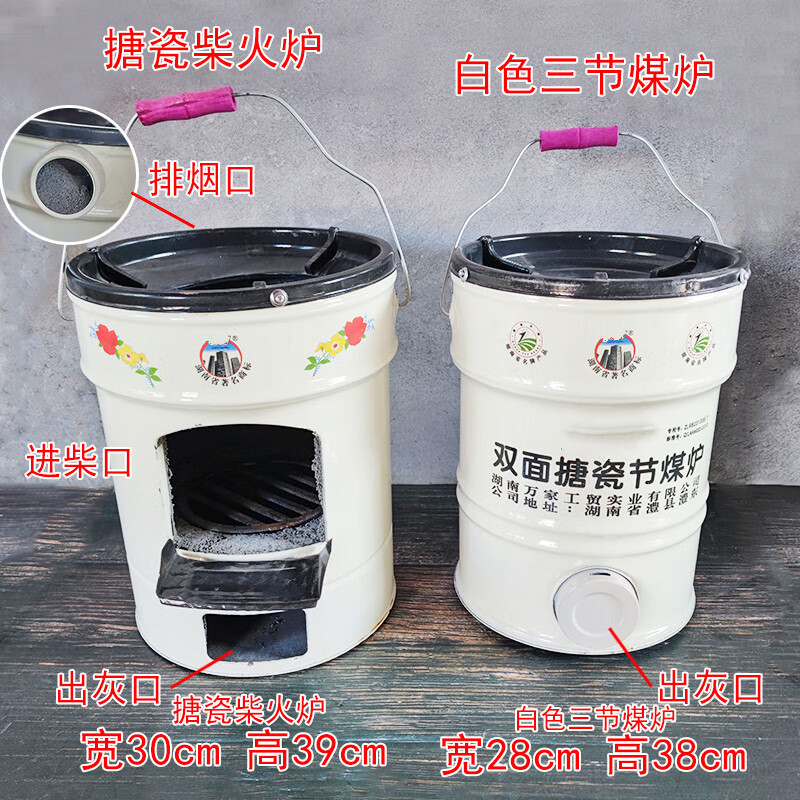 【产品尺寸】:二节煤炉直径20高26cm,三节煤炉直径28高38cm【可用燃料】:蜂窝煤、炭,柴。【适合场景】:家用煮饭、煲汤、炖菜、取暖、搬家过火、烧水、商用煨菜等【注意事项】只适合直径12CM的家用蜂窝煤