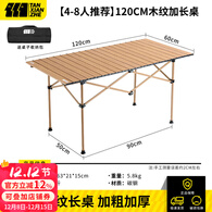 探险者露营桌户外桌椅套装折叠桌便携野餐桌蛋卷桌一桌四椅野营装备全套 【木色】120cm长桌+手提包