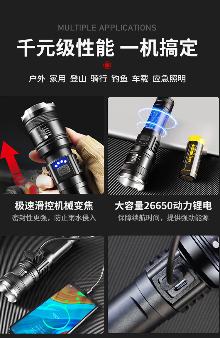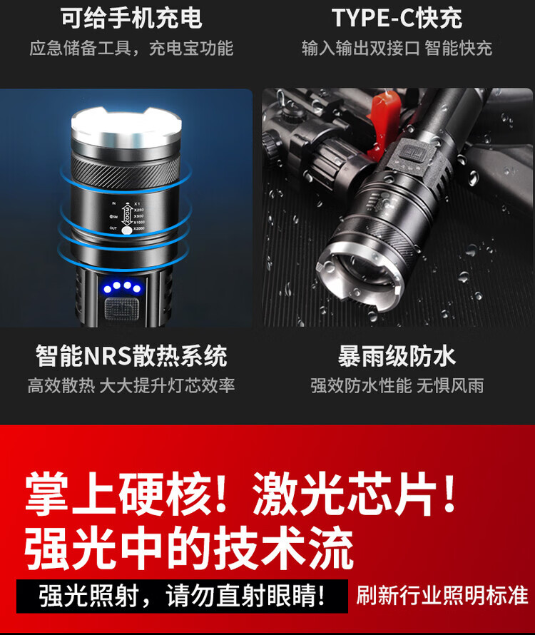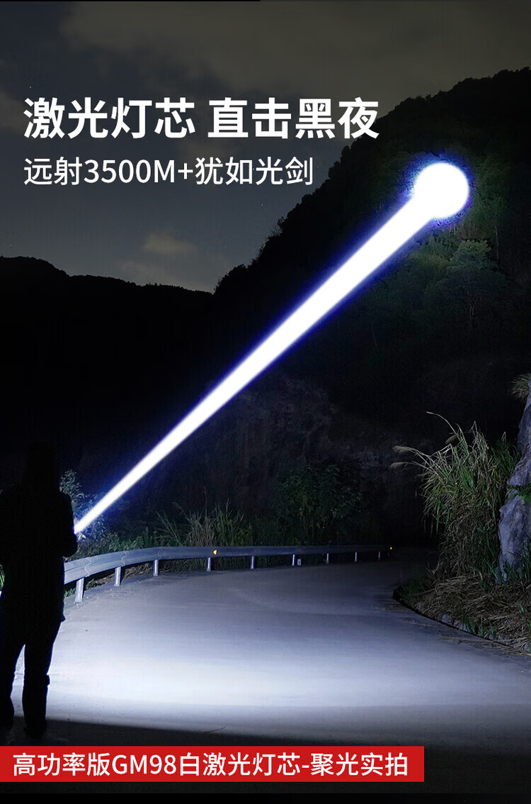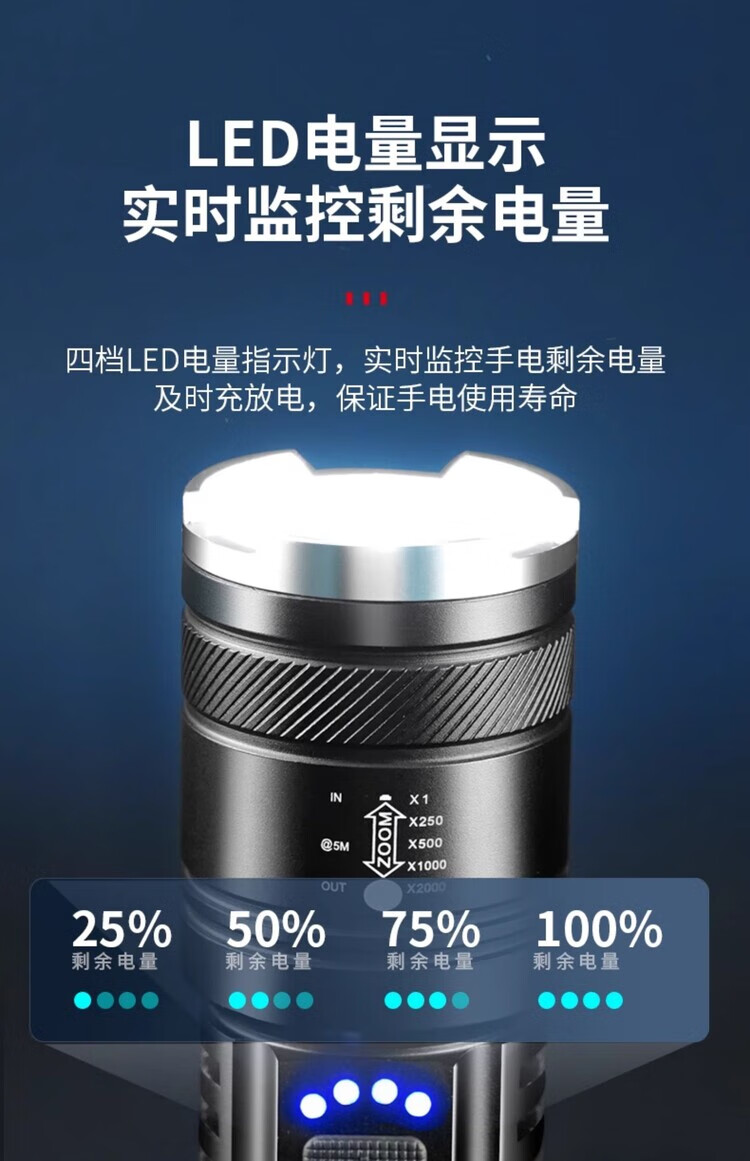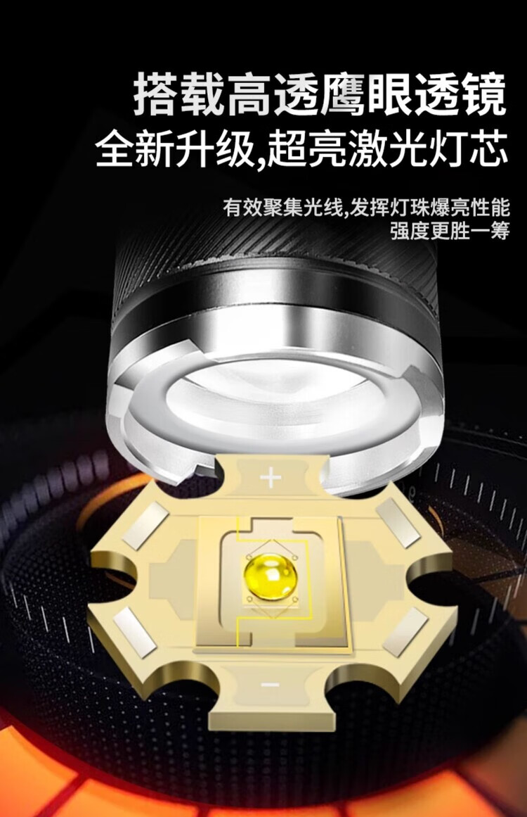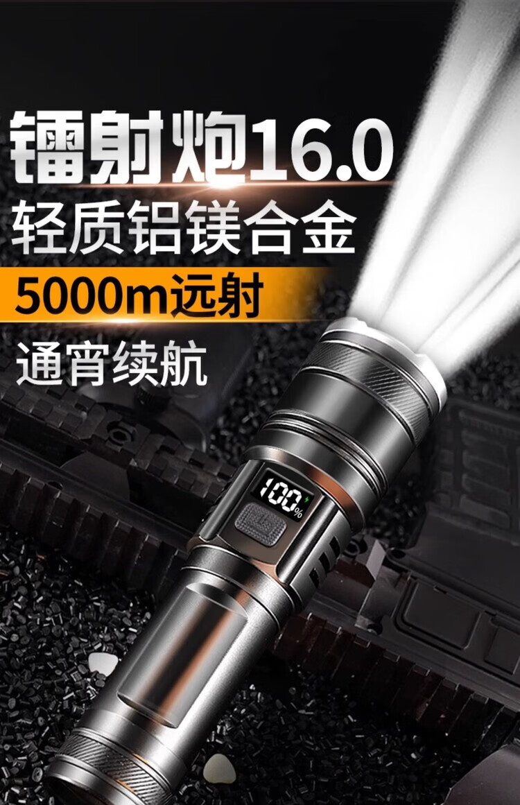 46950手电筒激光炮强光可充电超亮夜行远射大容量疝气灯家用照明 高配四锂电丨白光T4芯丨四锂电 礼盒款镭射炮机械变焦合金机身