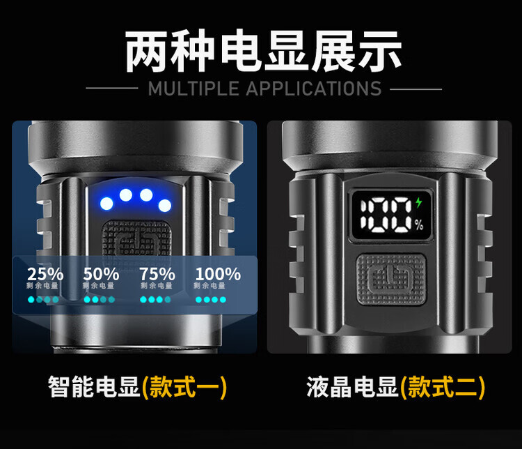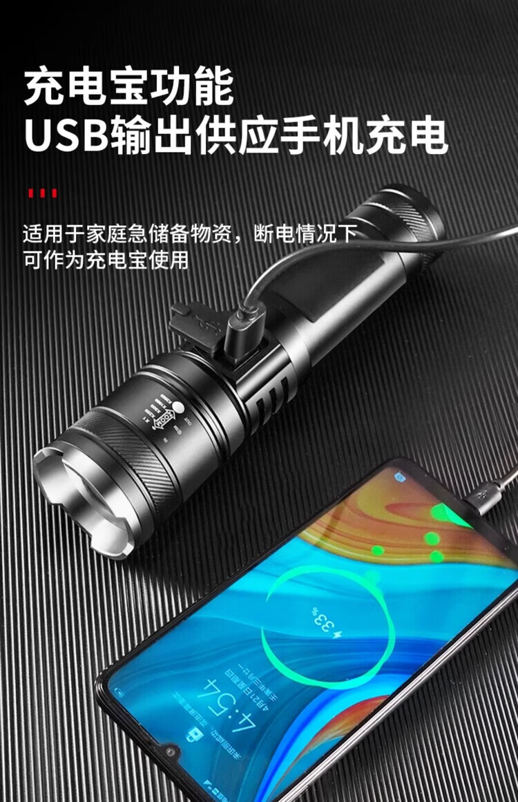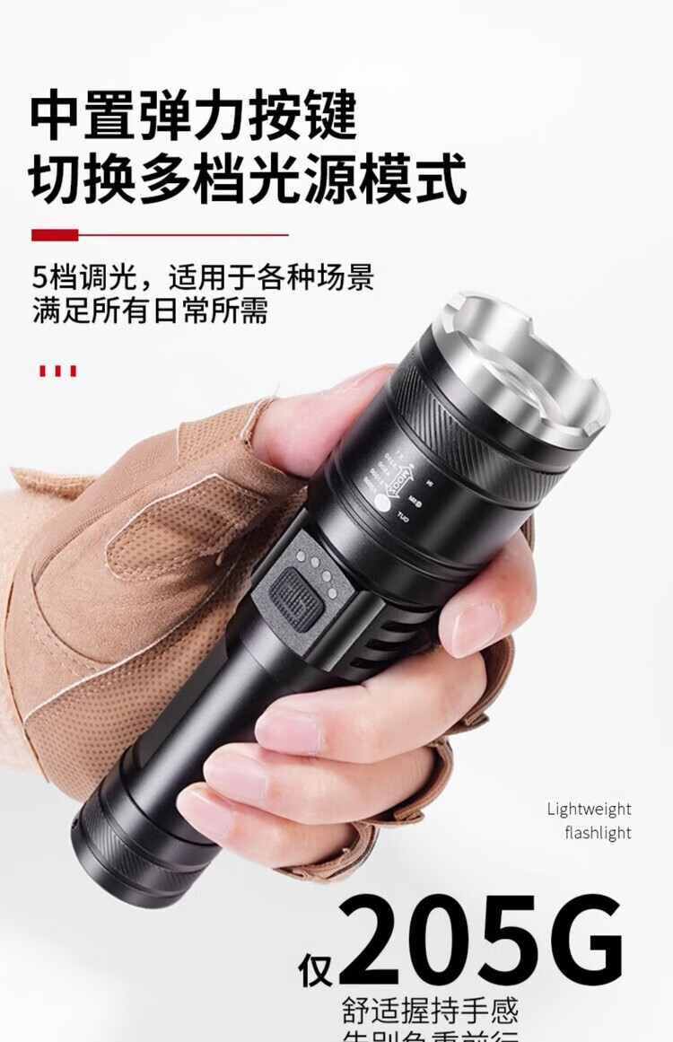 古慕妮金属小型便携式强光超长续航野外生存家用大功率户外爬登山 91A光灯芯-液晶电显-单锂电
