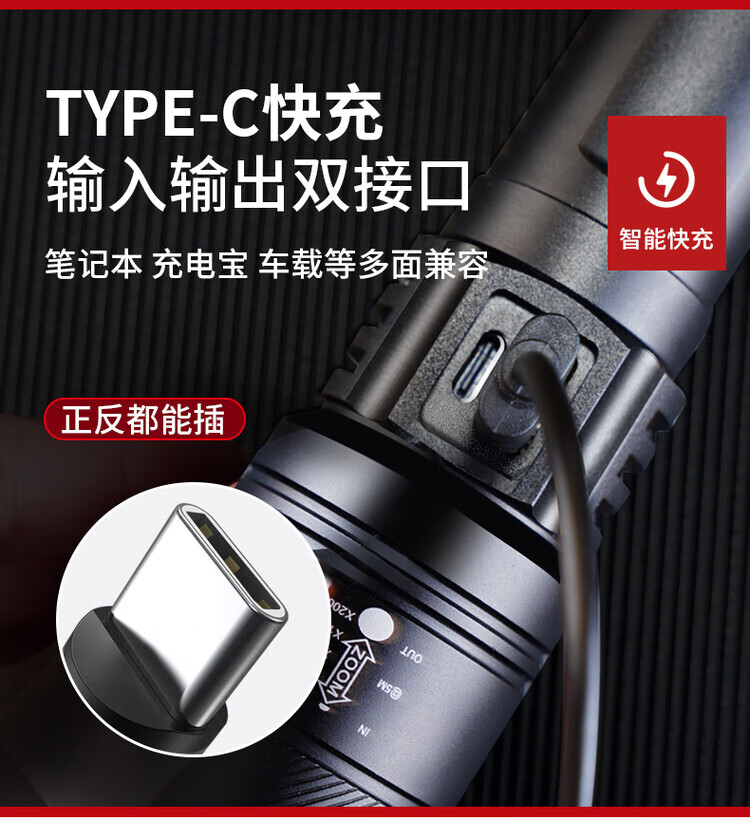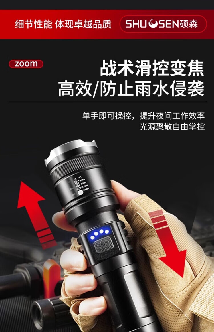 飞利浦手电强光超亮可充电家用户外远射长续航应急便携手电 [SFL8286]无极调光+柔光罩或