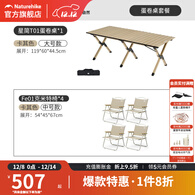 挪客蛋卷桌户外露营轻量化便携折叠桌野营野餐野炊桌椅装备全套一体 【4人桌椅-卡其色】120桌+克米特椅*4