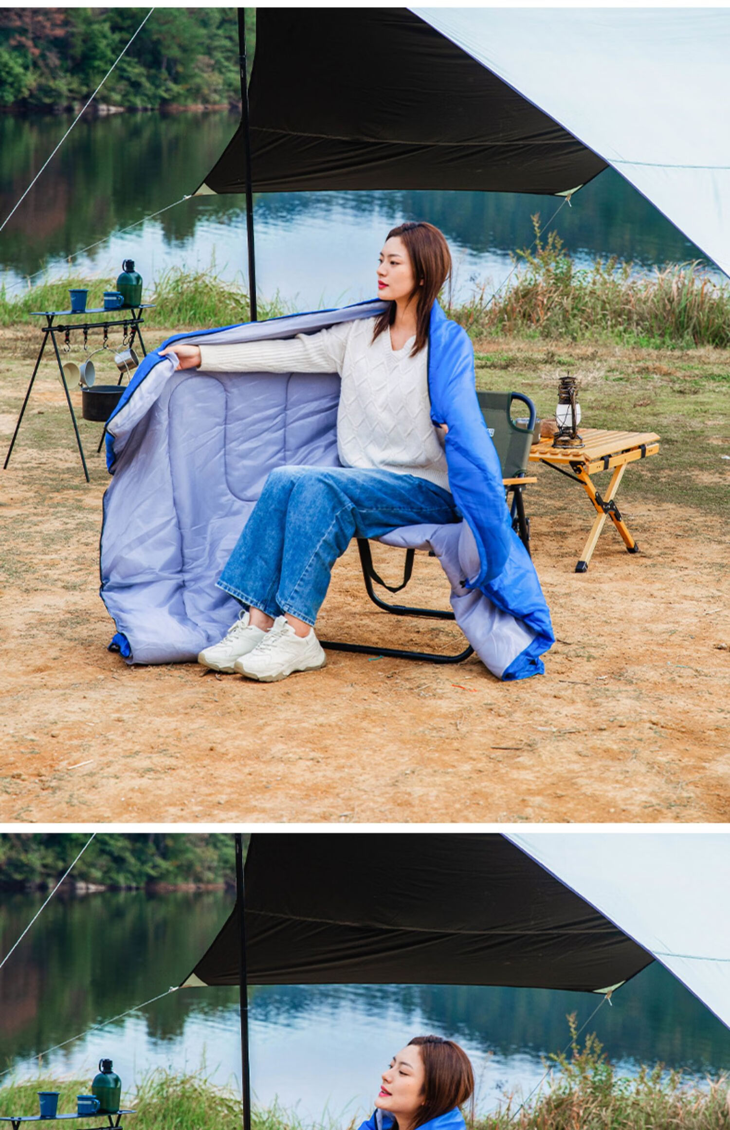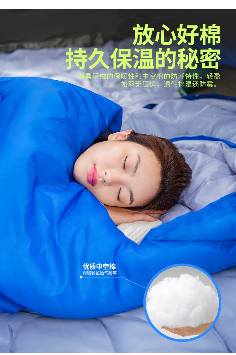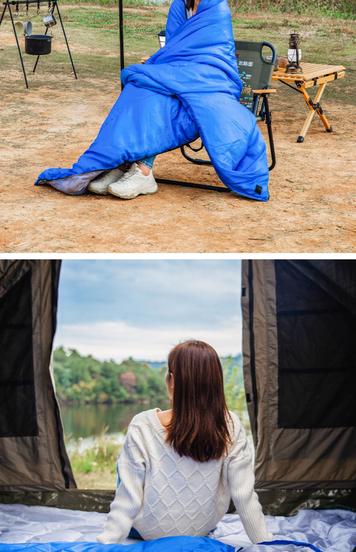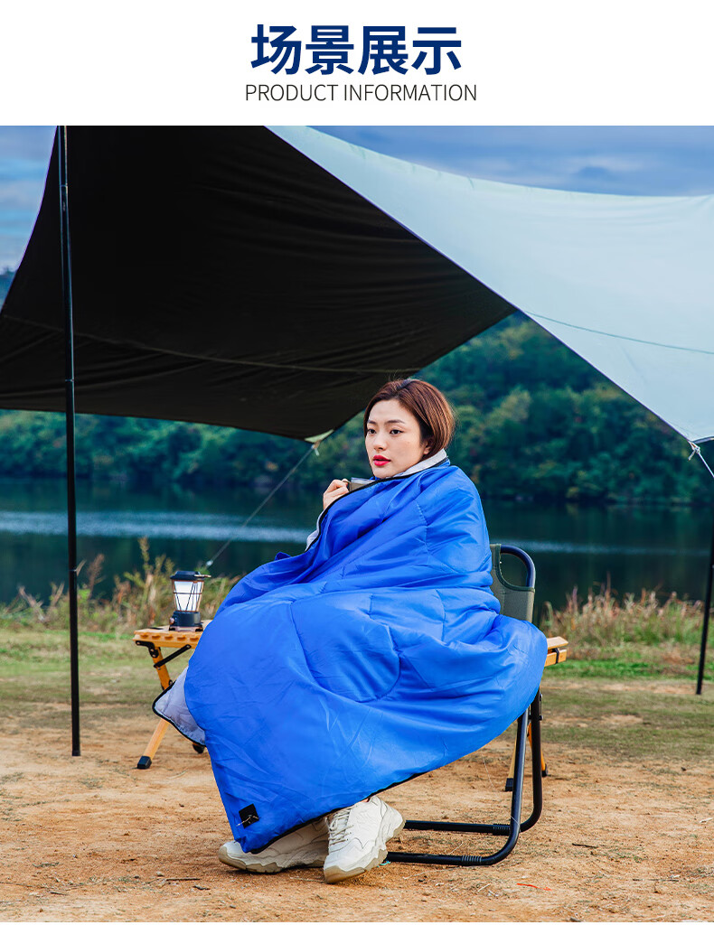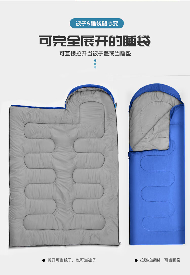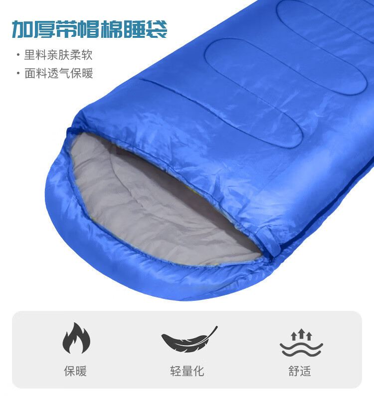 户外睡袋成人信封式便携露营睡袋加厚防寒秋冬办公室午休保暖睡袋 蓝色信封睡袋1.3KG【宜12度】