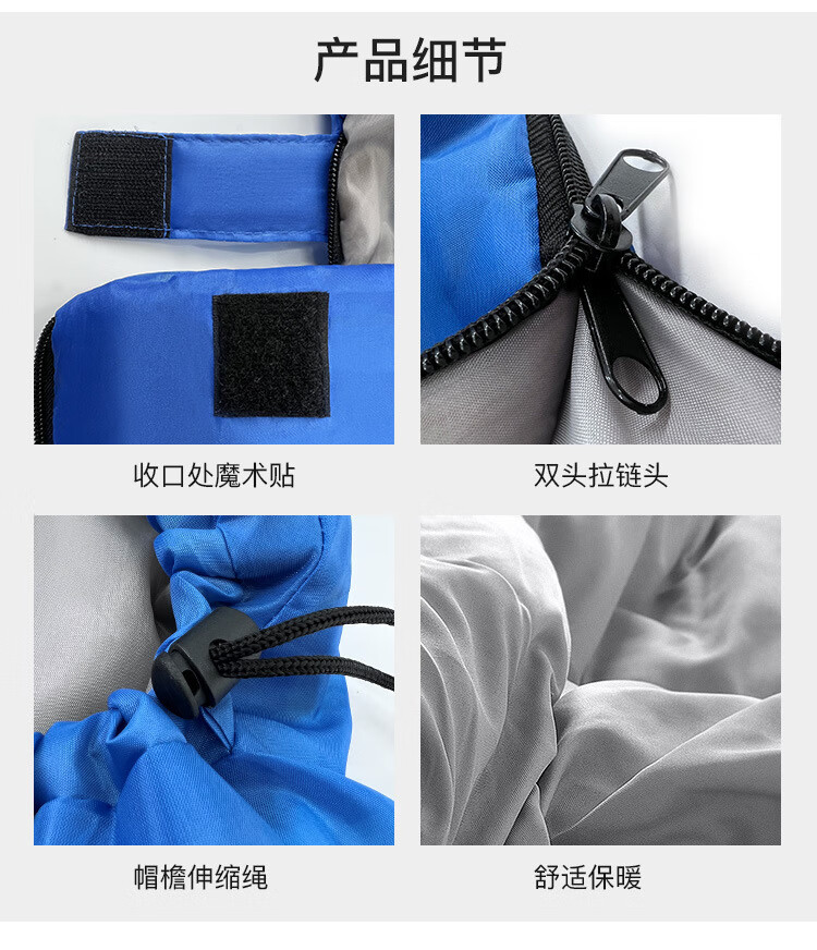 凯路德(KAIROAD)成人睡袋户外便携旅行露营冬季保暖加厚防寒室内午休酒店隔脏被子 连帽锁温(可拼接双人)1.35kg-藏蓝