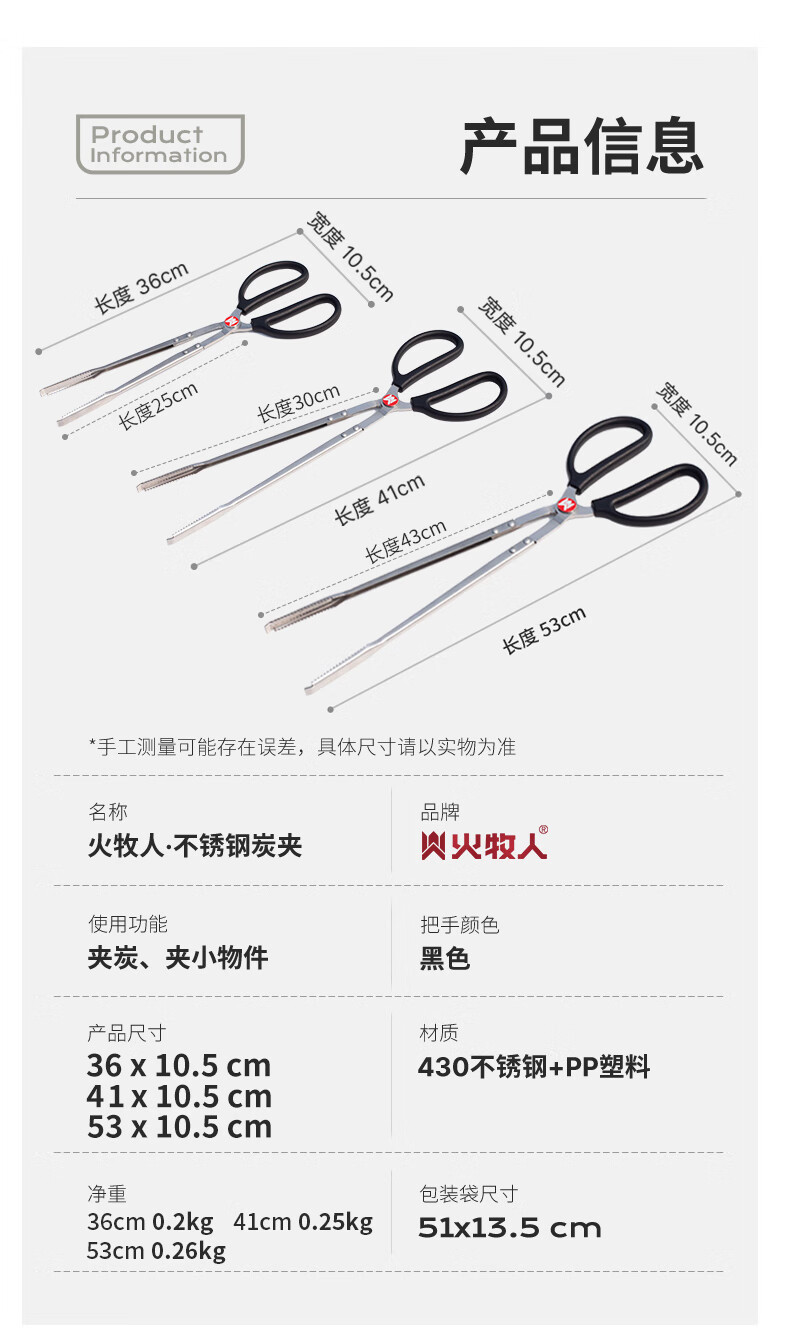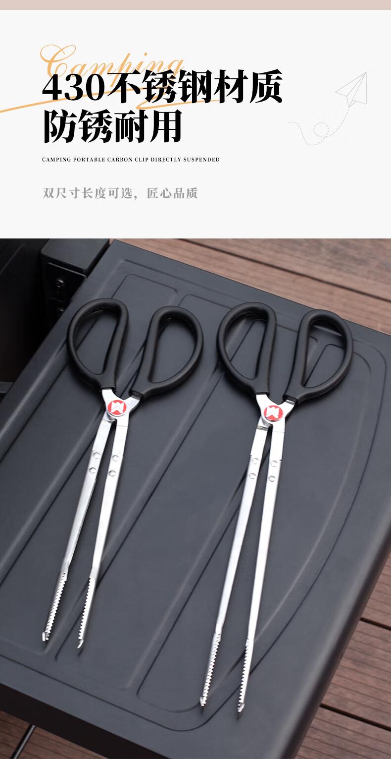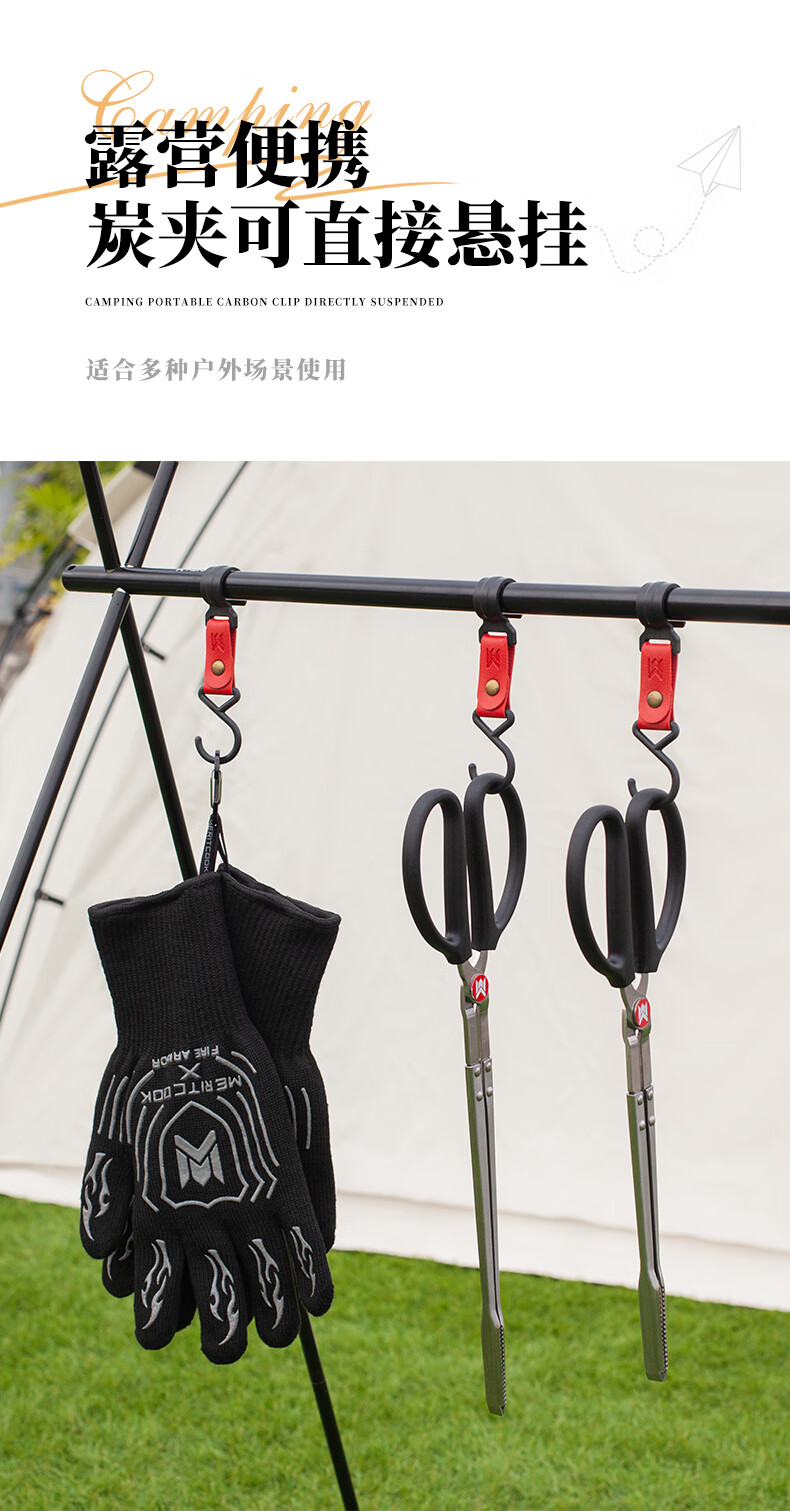 meritcook火牧人不锈钢炭夹户外夹子露营烧烤工具火钳拾物夹加长加厚碳夹 53cm不锈钢炭夹(京东多仓发货)