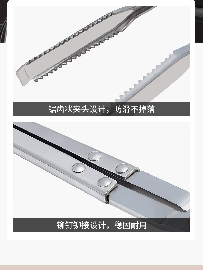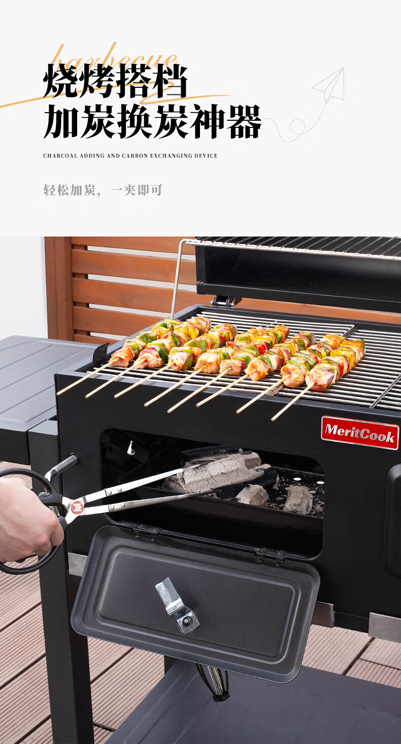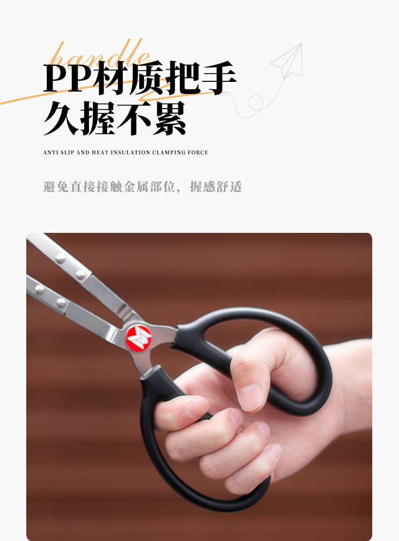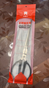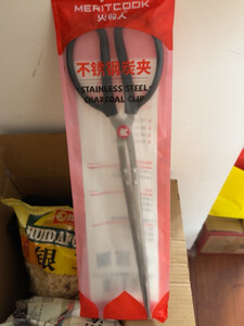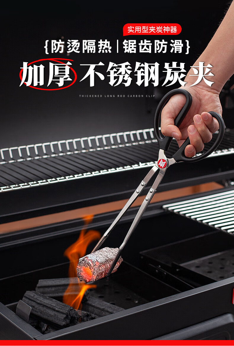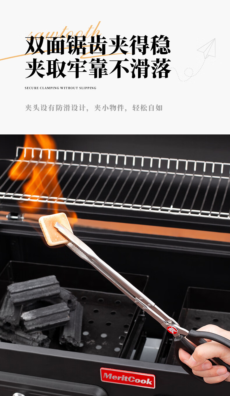 meritcook木炭炭夹火钳加长型不锈钢炭夹厨房户外烧烤常用夹碳夹子工具配件 36cm不锈钢炭夹