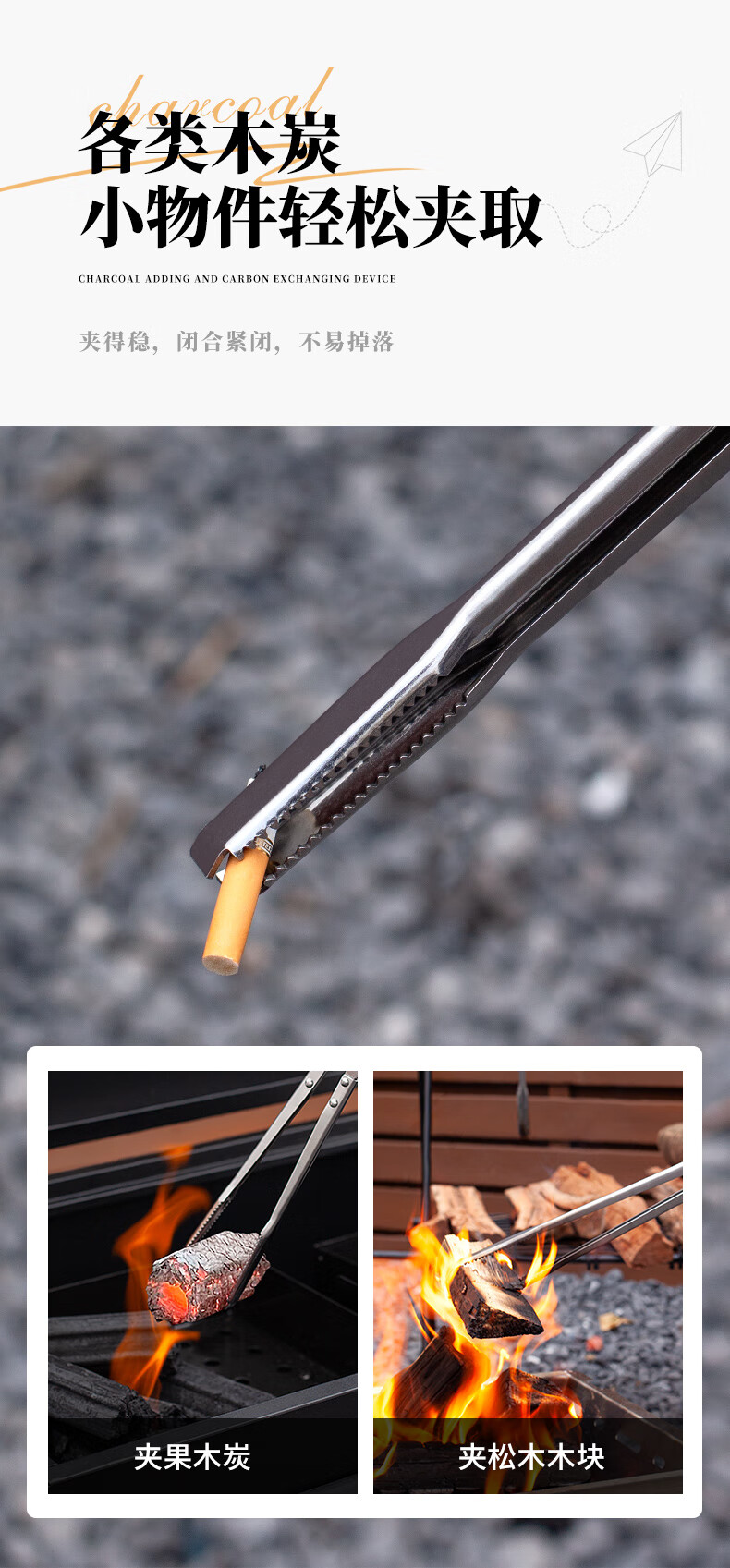 原始人户外露营烧烤焚火钳加长加厚碳夹子工具用品防烫柴火木炭夹 41cm