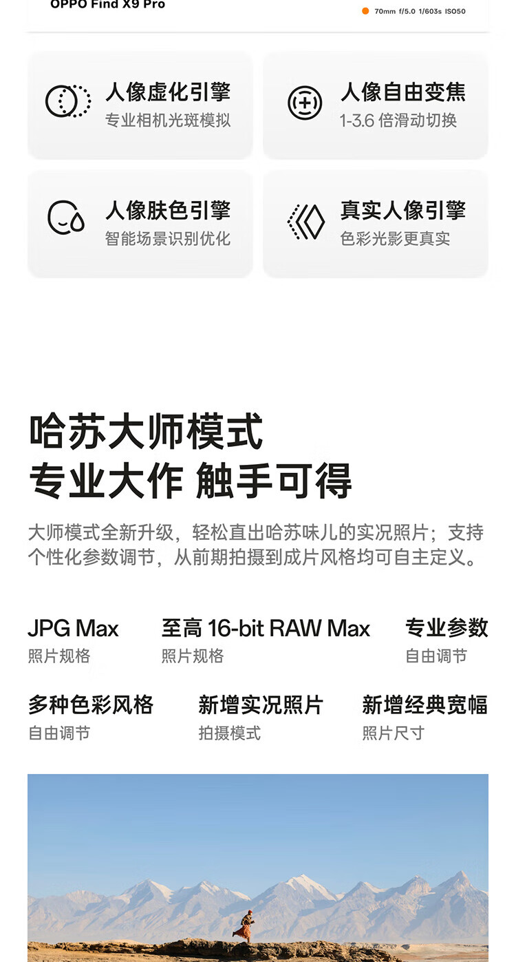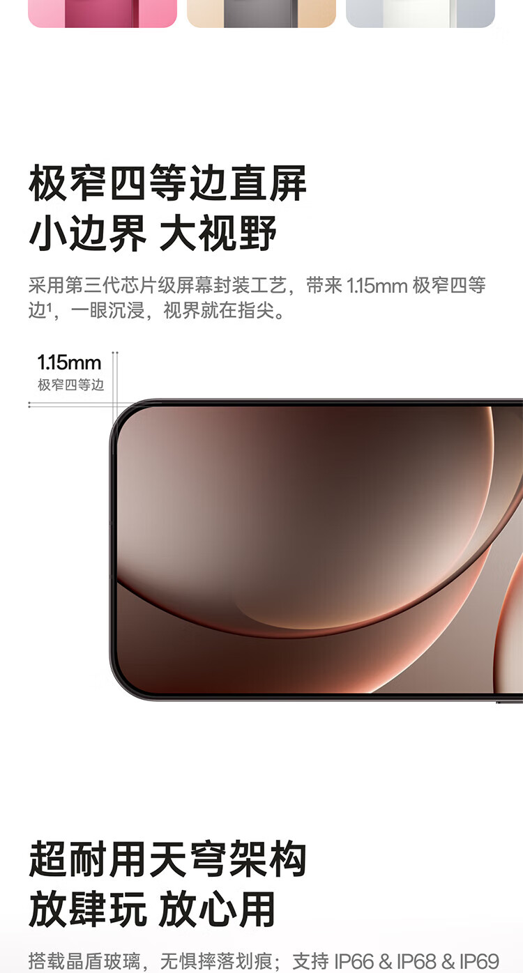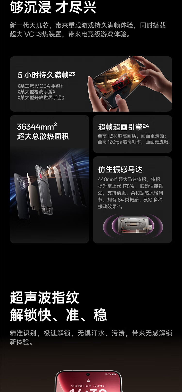 AI大模型,轻薄,高频PWM调光,全焦段影像,潜望式长焦,防水防尘,无线充电,NFC,红外遥控,大底主摄
