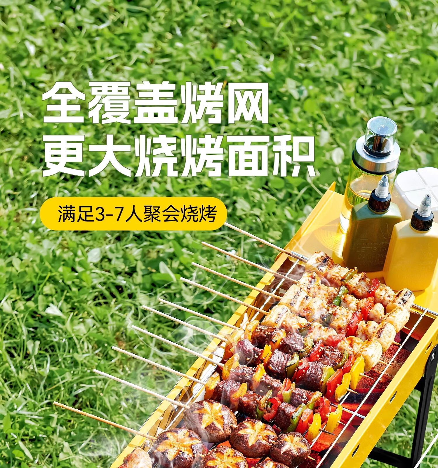 户外露营必备!烤架可折叠收纳,放进后备箱不占空间,展开后稳定性也很好