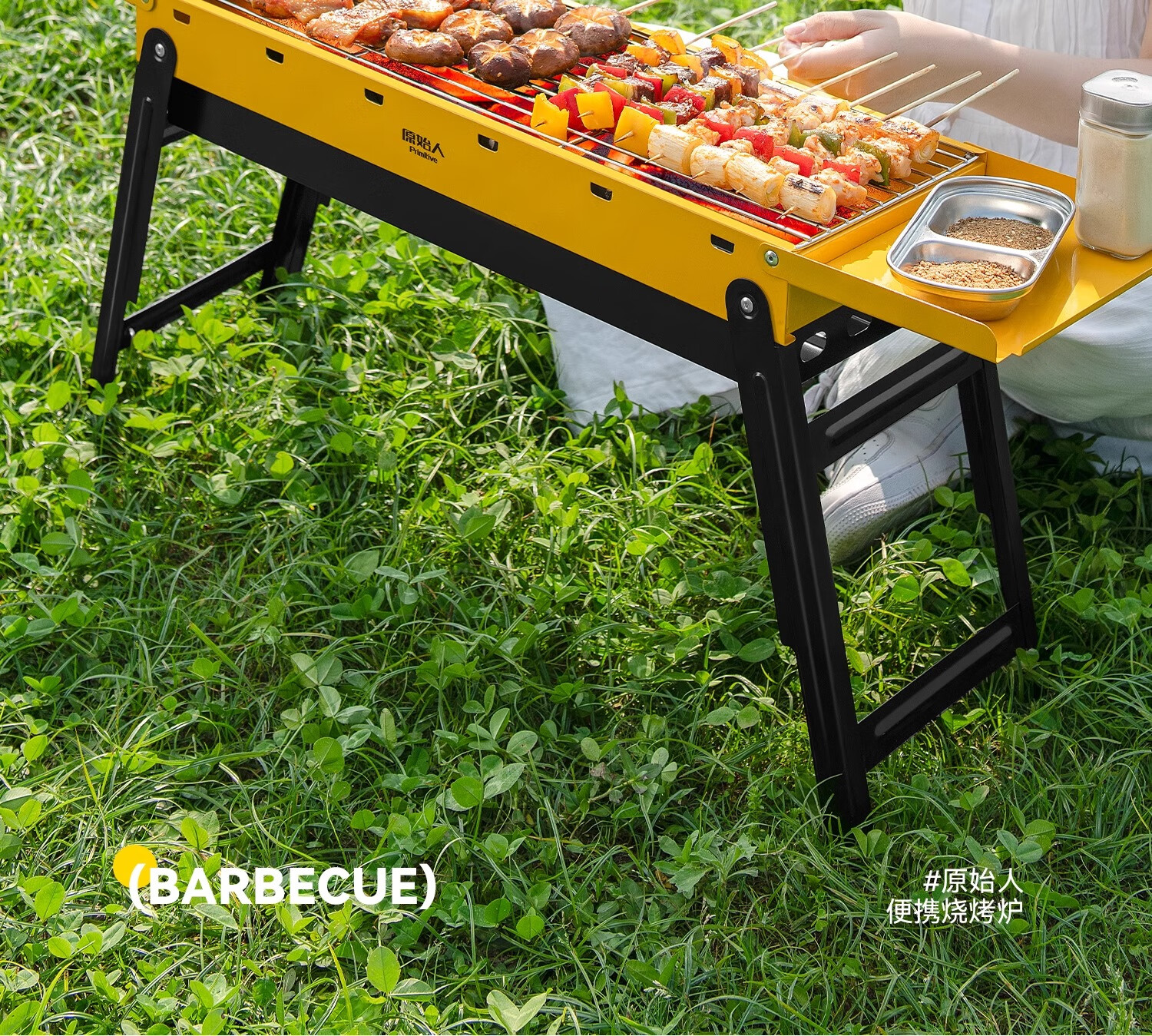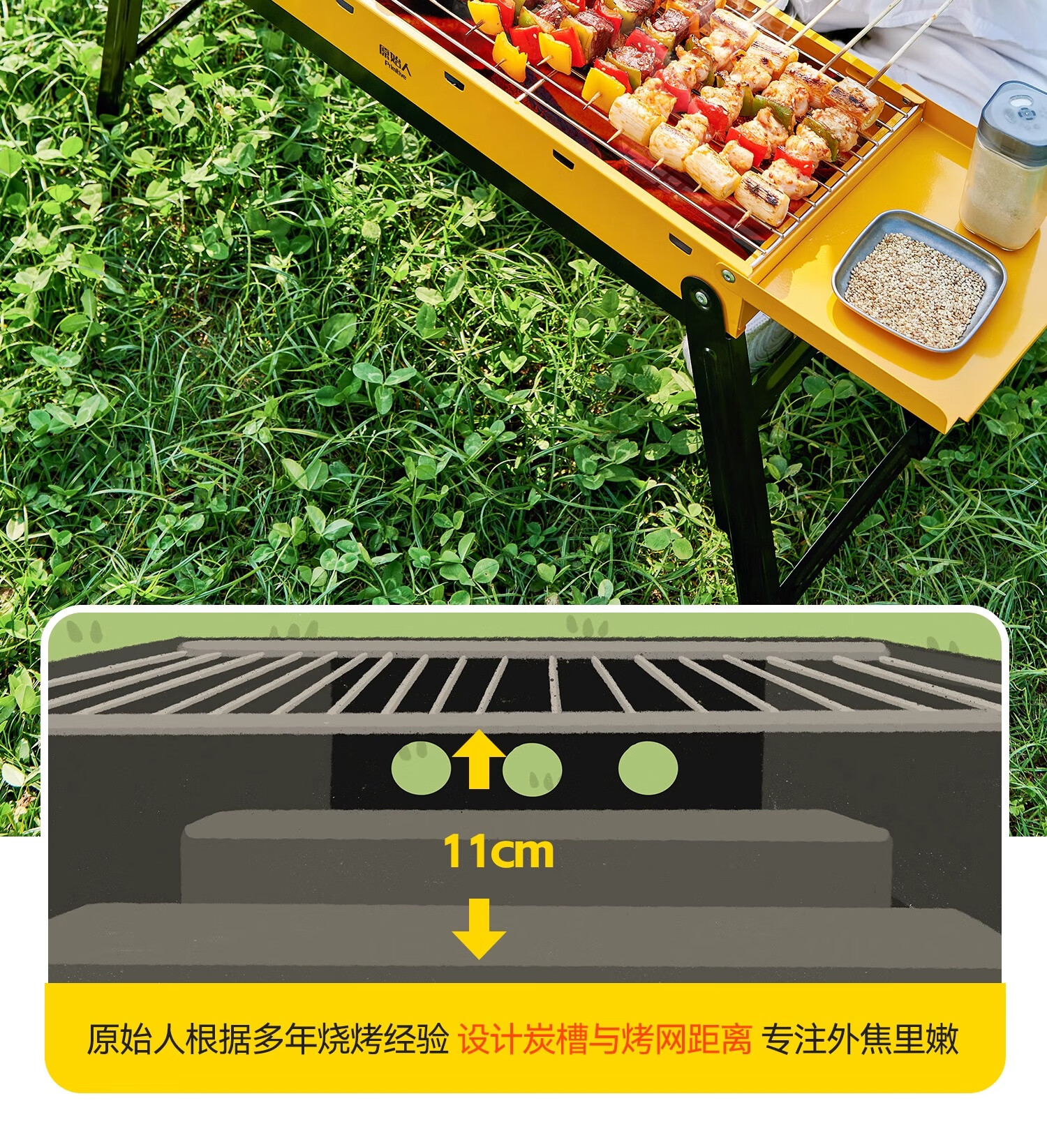 原始人烧烤炉户外烧烤架家用折叠烤串炉子露营便携木炭烤肉不锈钢小型 加厚烤炉+3件套