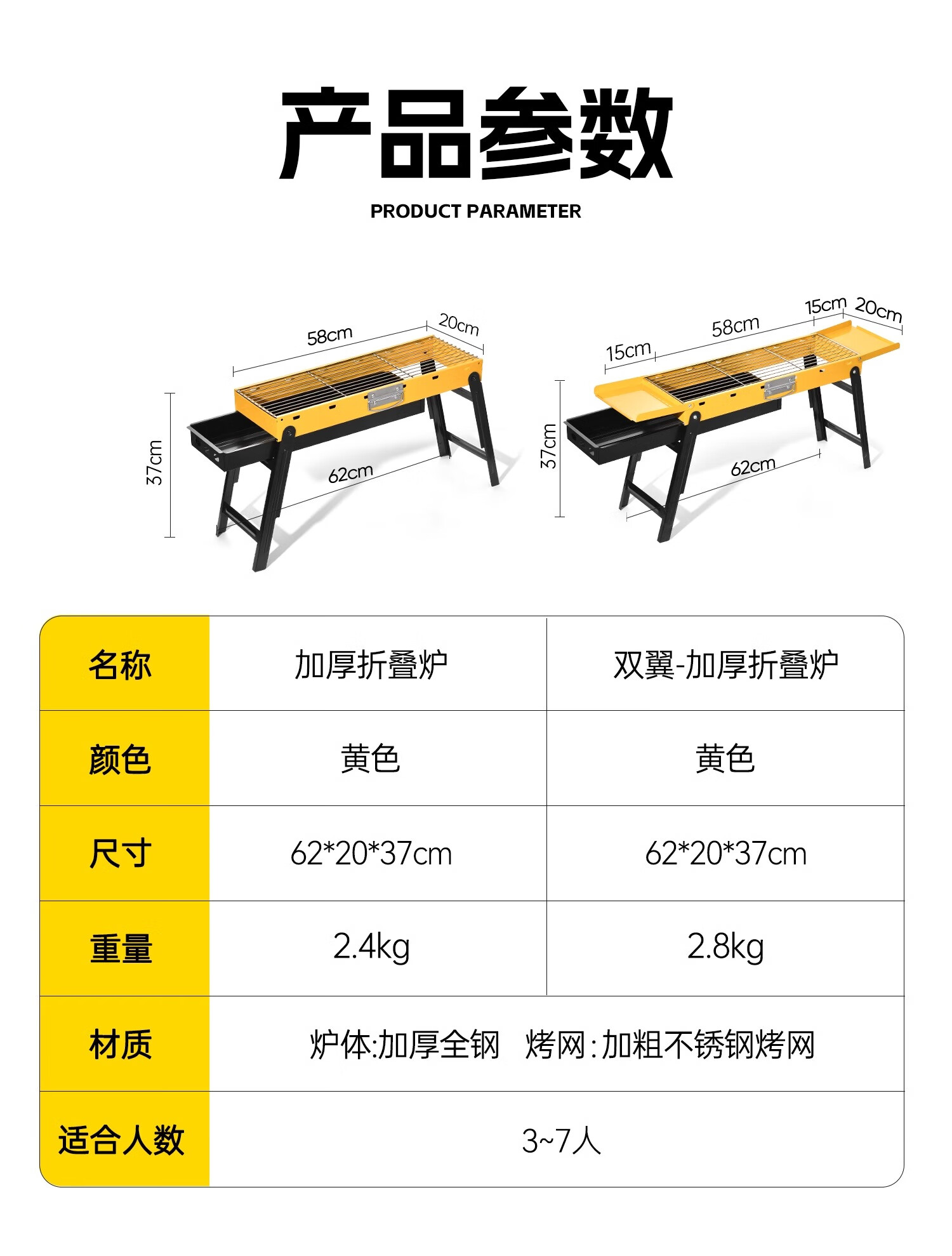 CAMELJEANS烧烤炉家用便携式烧烤炉露营折叠炭烤炉烤肉架 174BJ45761A