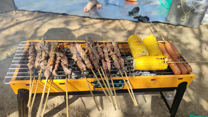 原始人的烧烤架子很小巧,还送了收纳袋,方便收纳,两个人的烧烤刚刚好
