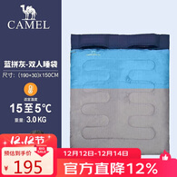 骆驼(CAMEL)户外露营保暖便携式双人睡袋加厚冬季防寒睡袋 A9W3F5150蓝拼灰
