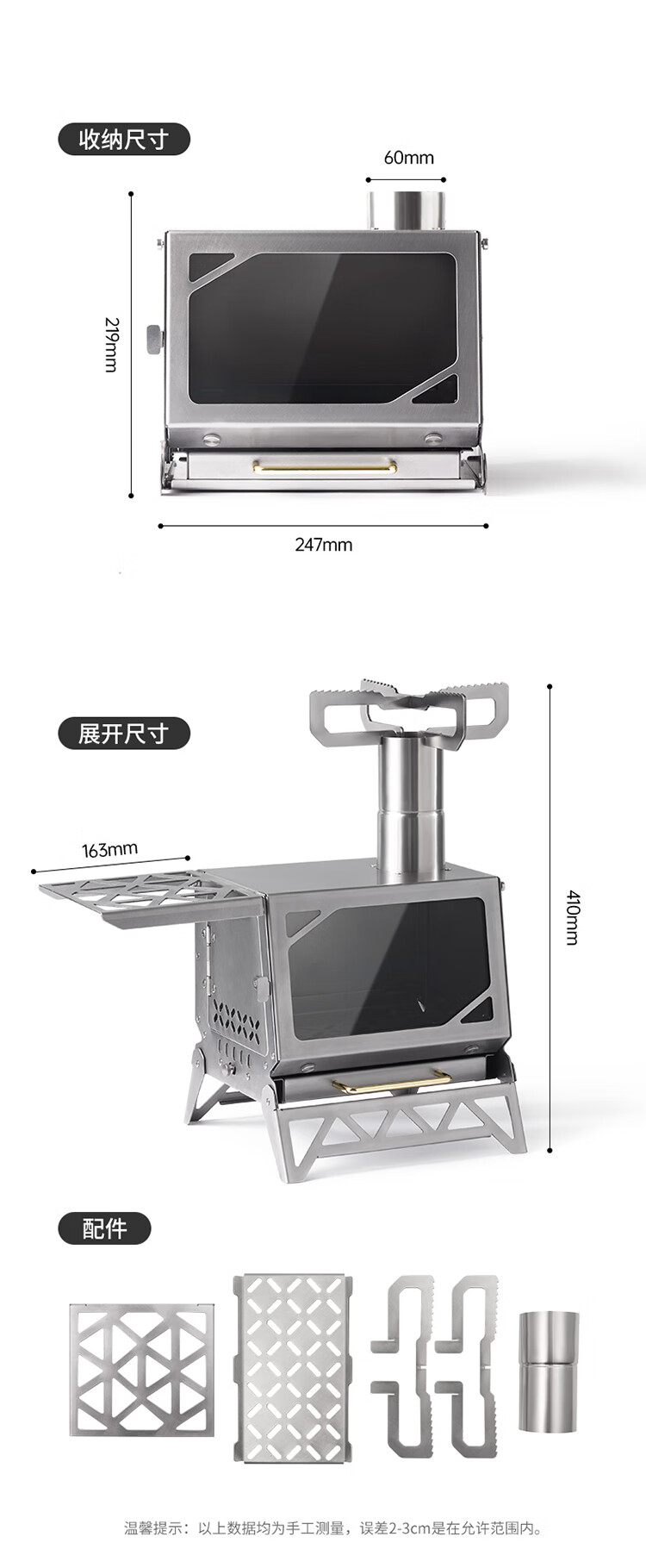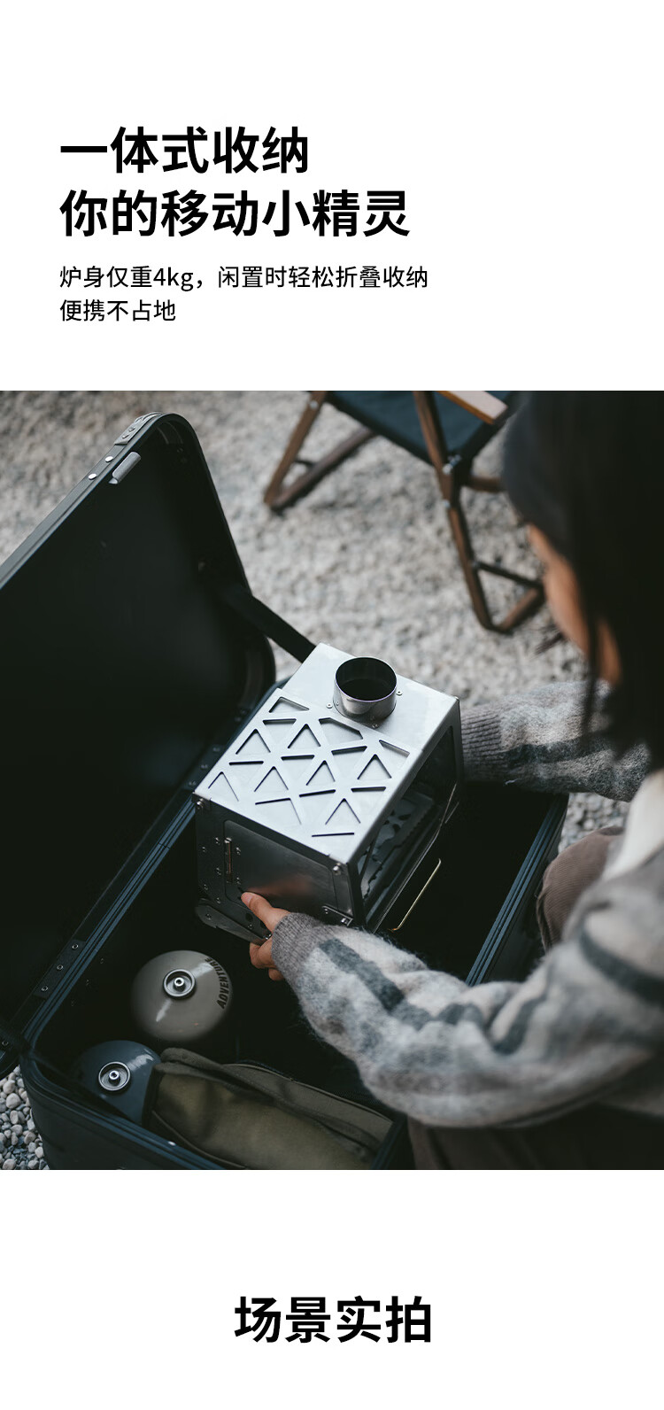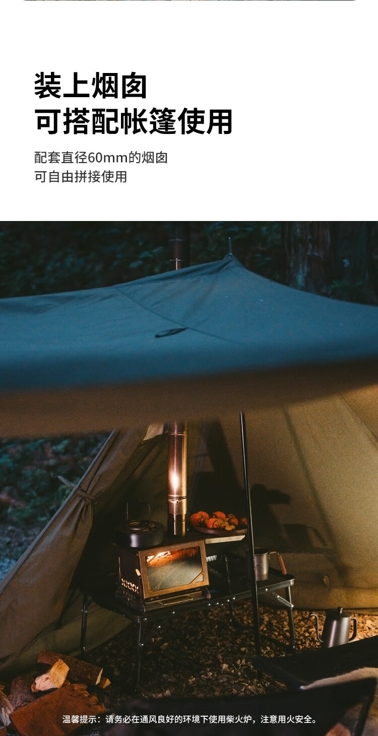 凰一 柴火炉户外野营折叠卡式无烟火箭露营便携帐篷取暖炉 不锈钢帐篷炉(窗花)