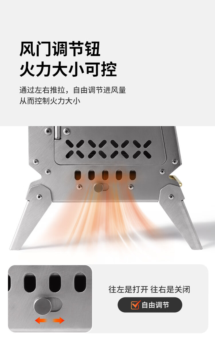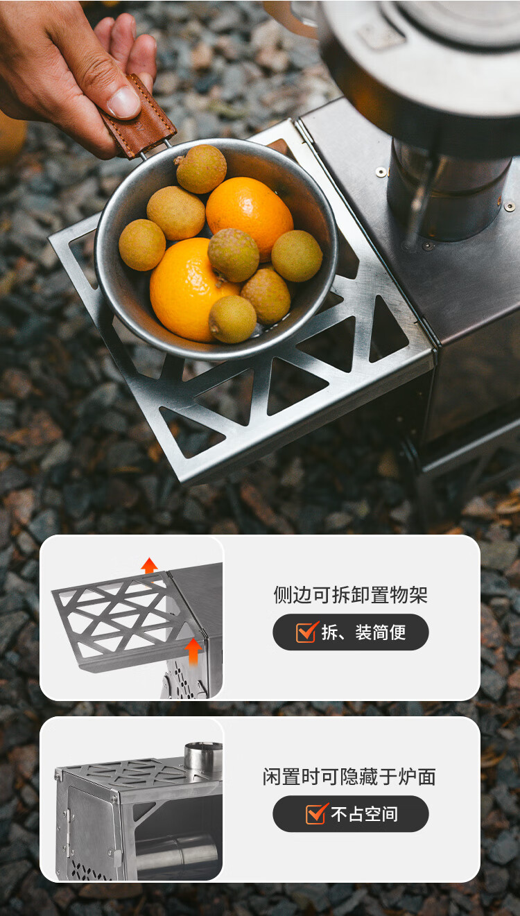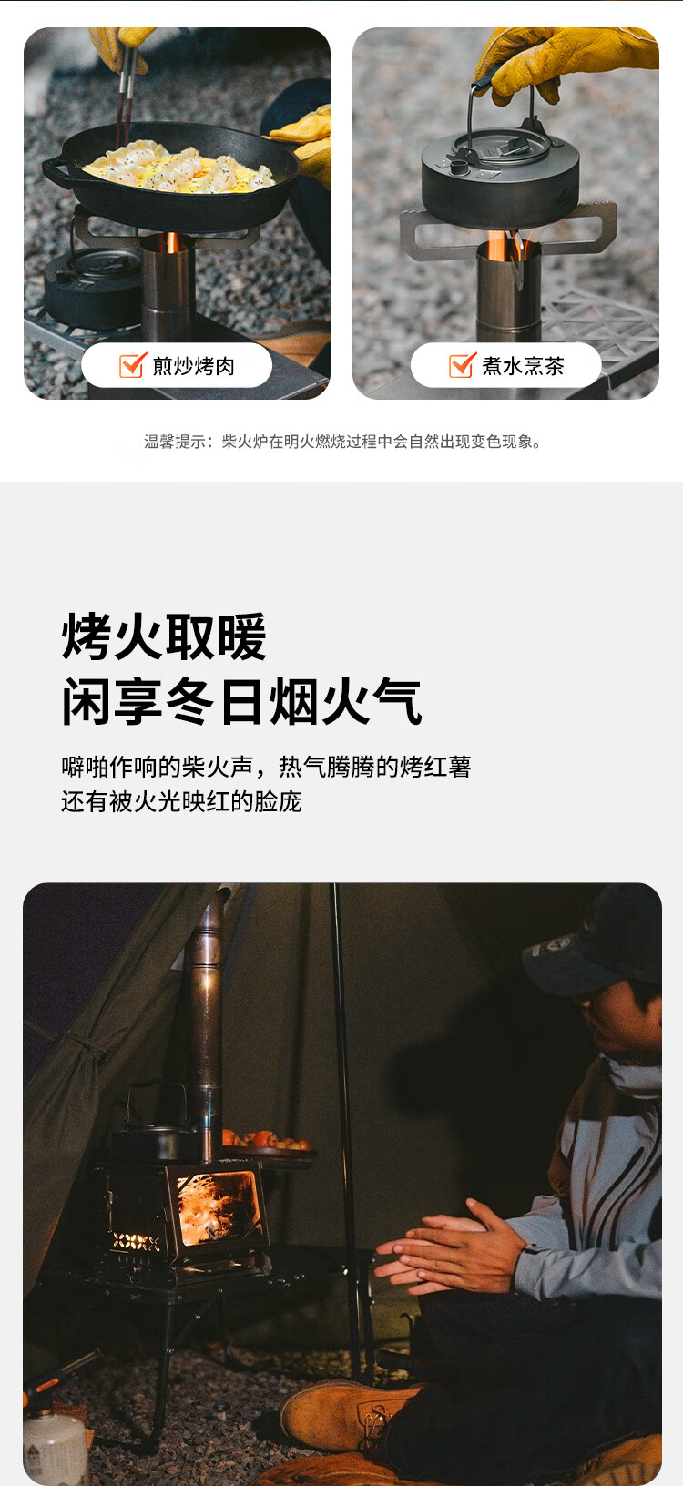 凰一 柴火炉户外野营折叠卡式无烟火箭露营便携帐篷取暖炉 不锈钢帐篷炉(窗花)
