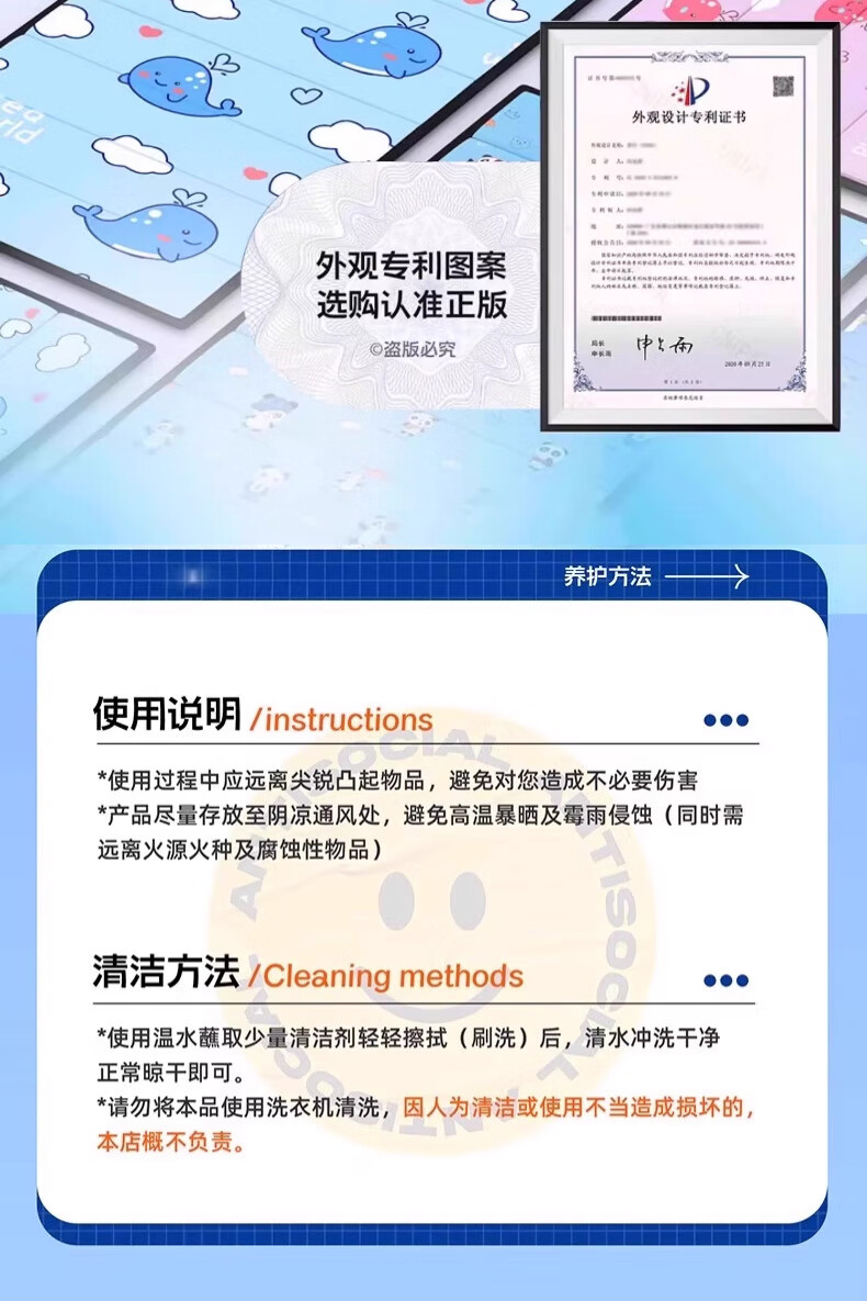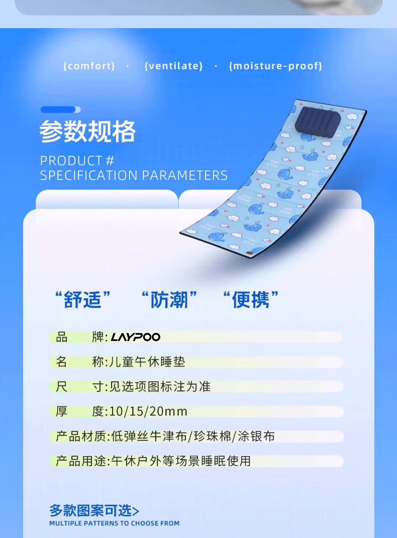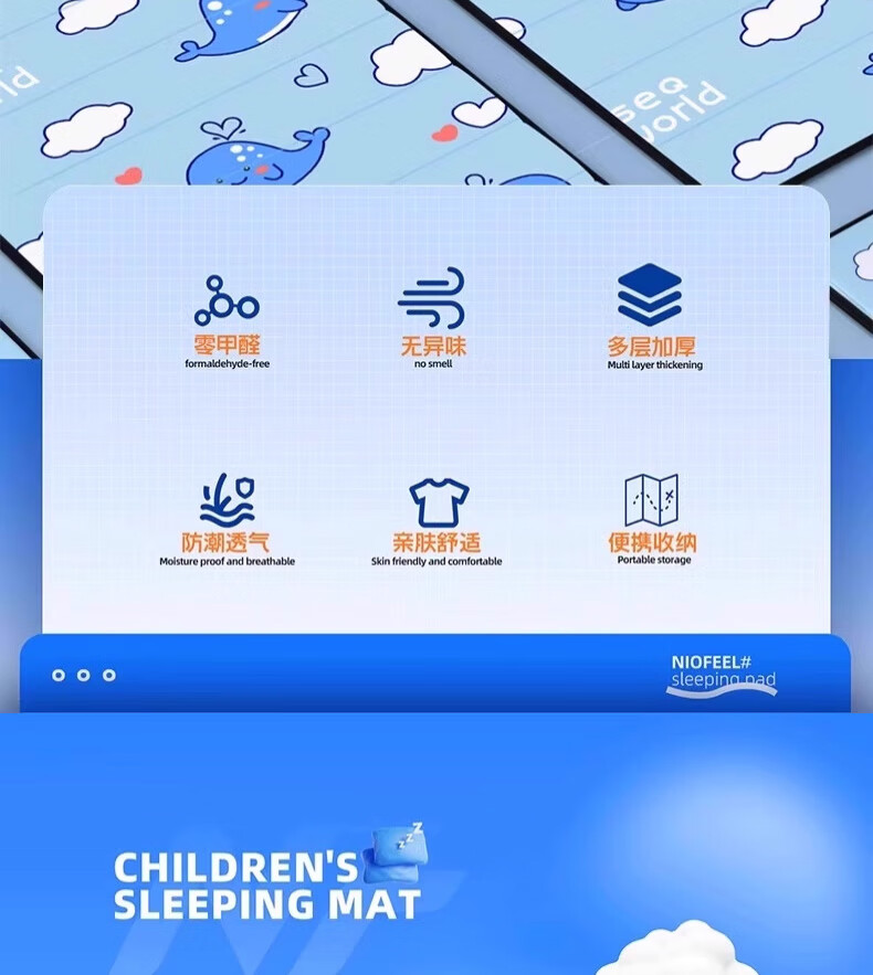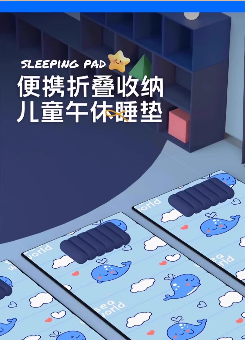 这个午休垫子太可爱啦!小鲸鱼图案萌到犯规,铺在地上,孩子在上面午休特别合适,还可以自由长度折叠。又软和又好看,质量也不错,爱了爱了~