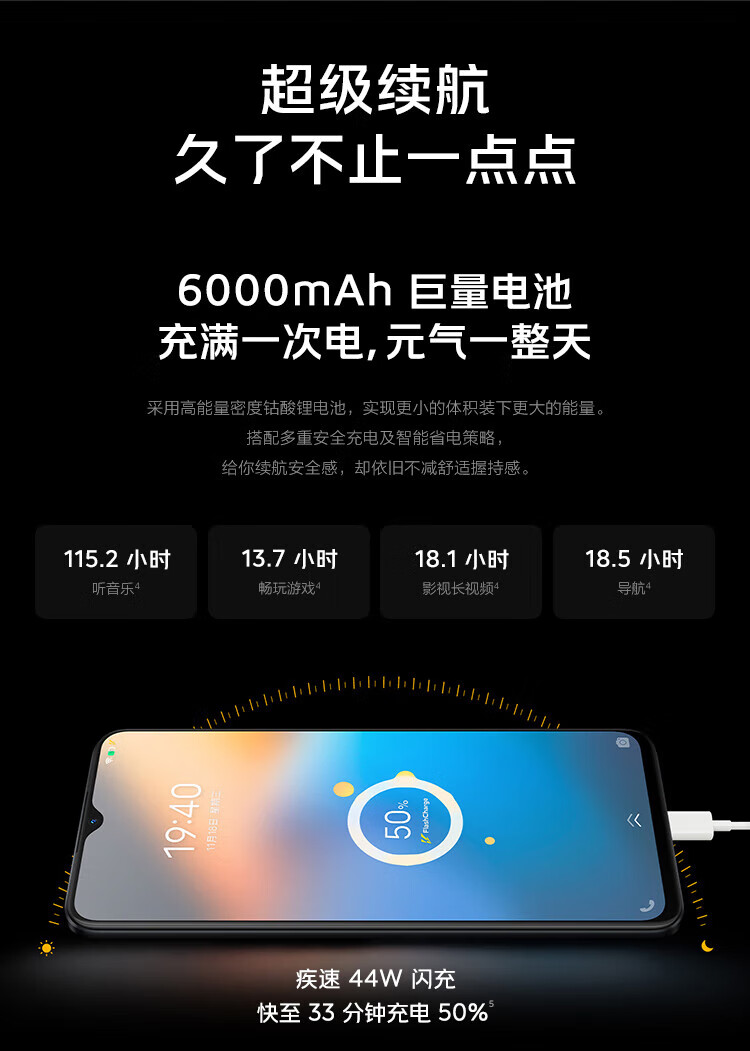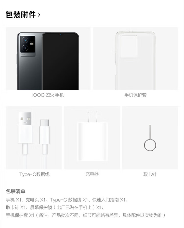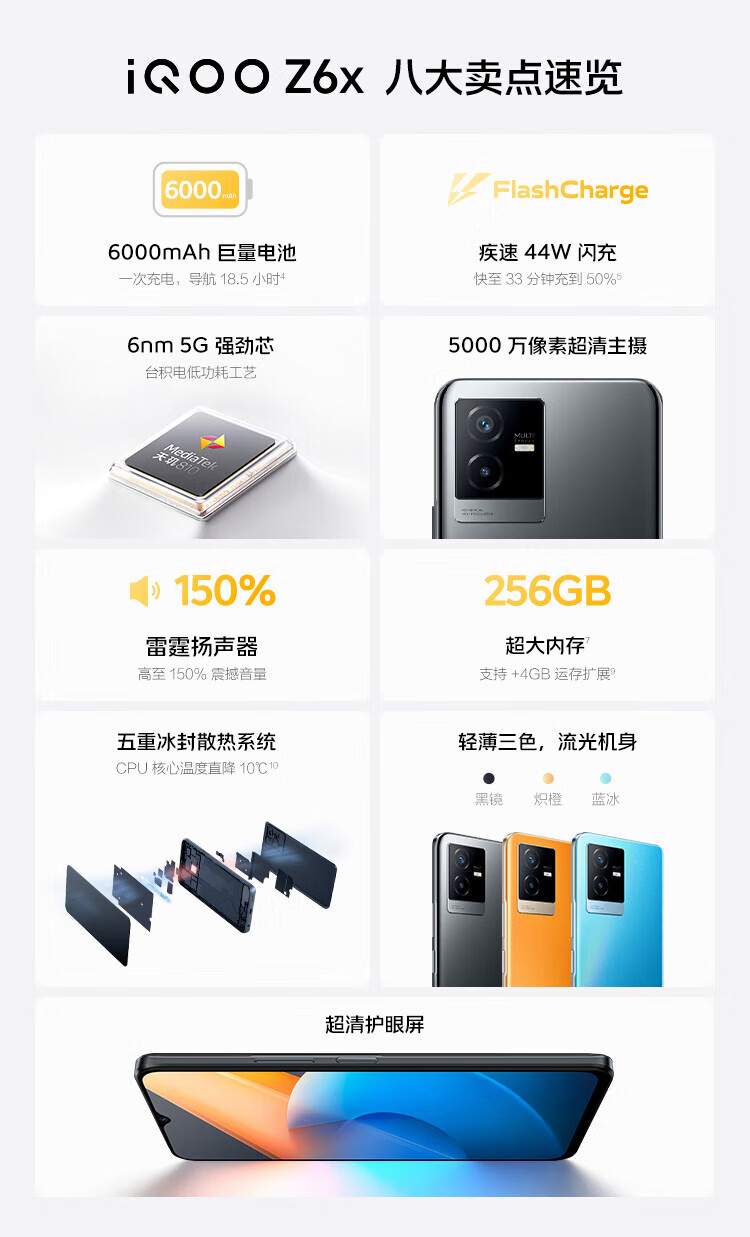 vivo iQOO Z6x 6000mAh大电池长续航 44W闪充 双模5G通手机iqooz6x Z10X-月岩钛 8GB+128GB