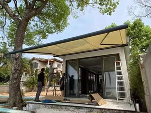 家后院安装一个挡雨棚,质感很好,收缩自如完全不占空间,价格便宜。真的很错