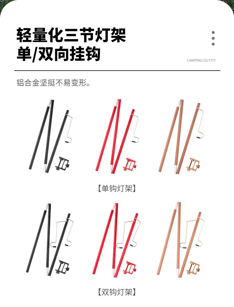 OIMG露营灯支架户外便携铝合金桌面灯架夜市摆摊插地灯架挂钩折叠灯杆 黑色【露营灯架】双钩两用带地钉