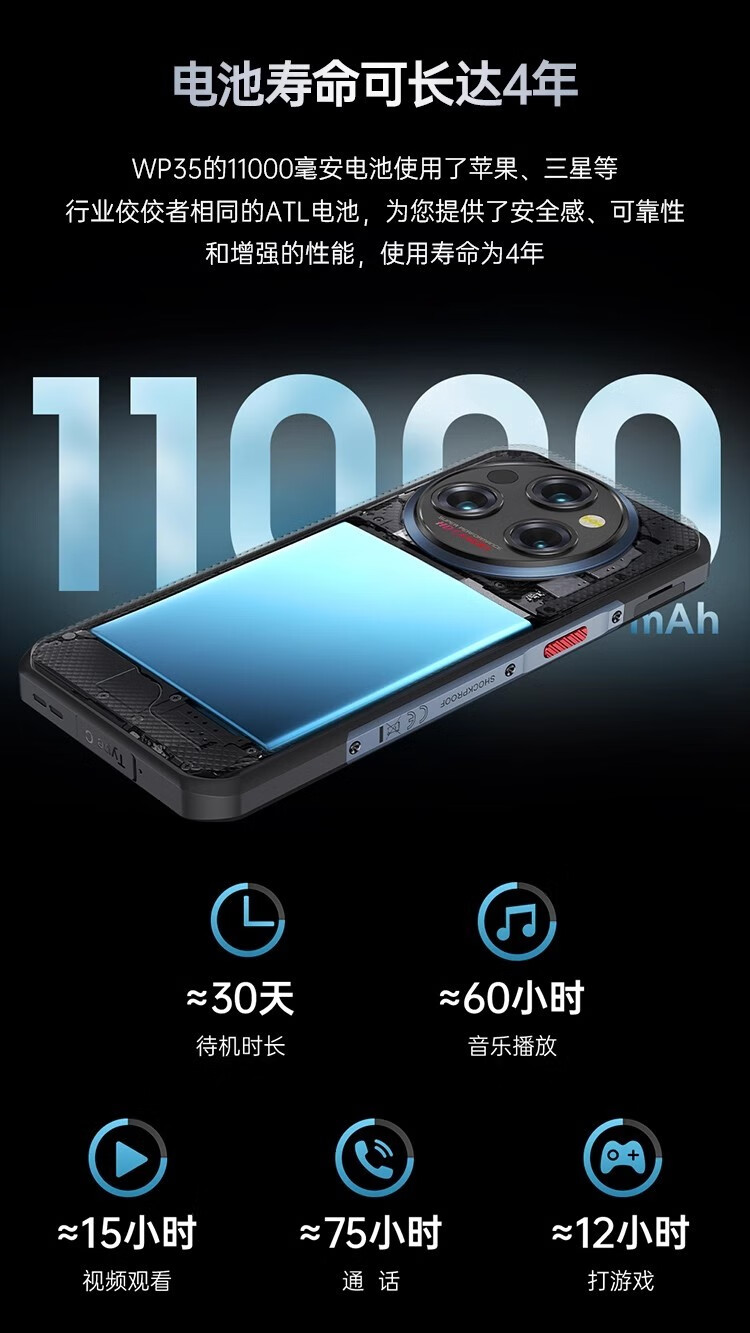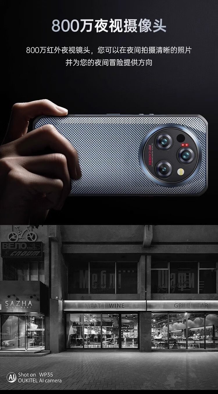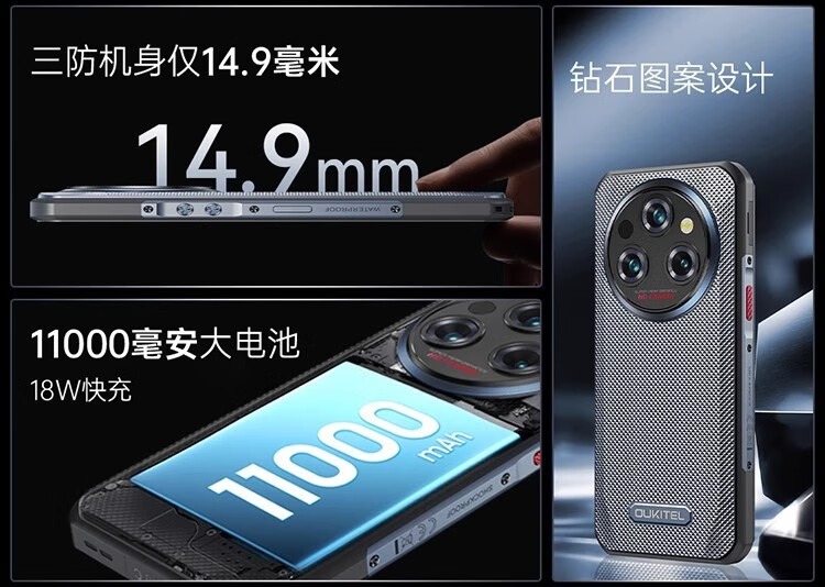 欧奇OUKITE WP35 Pro三防智能手机指纹指纹人脸识别全网通5G双卡11000毫安大电池防水防摔超长待机 WP35pro 灰 5G版【36GB+512GB