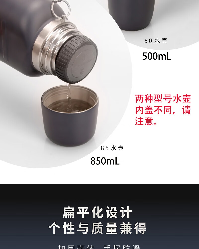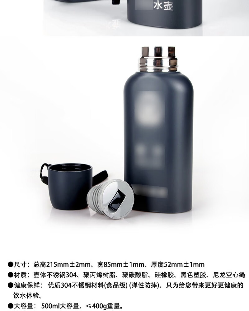 指路狼公发单位保温扁水壶不锈钢真空便携水壶500ml执勤藏蓝色水壶