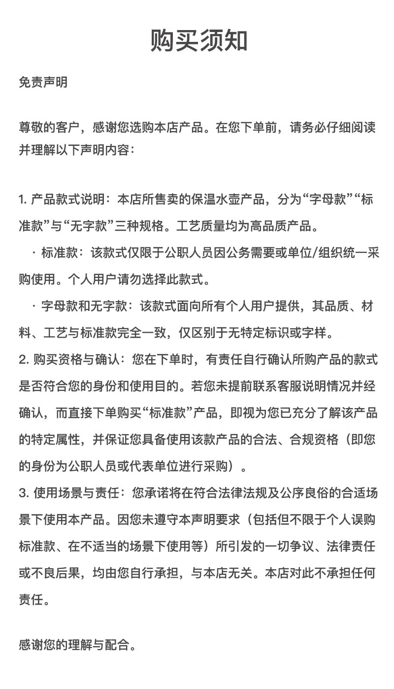 中安星通高品质公发执勤水壶户外保温水壶公标单位配发款安保巡逻水壶 500mL字母款