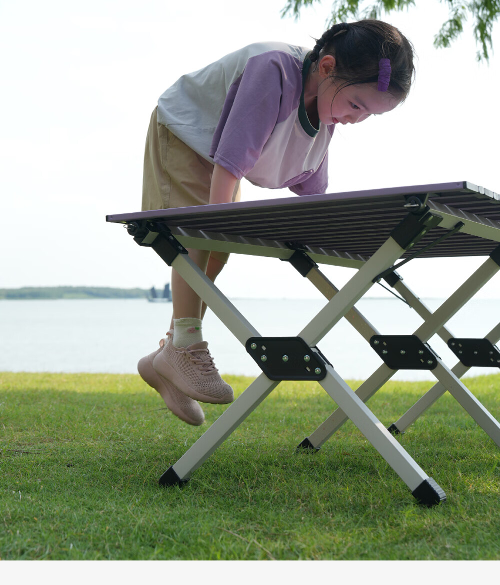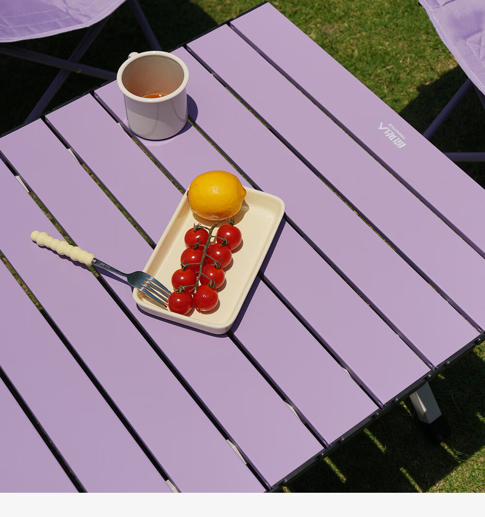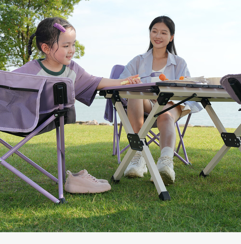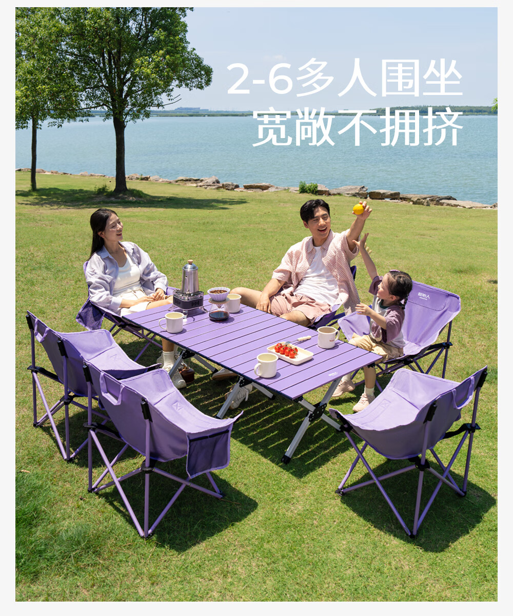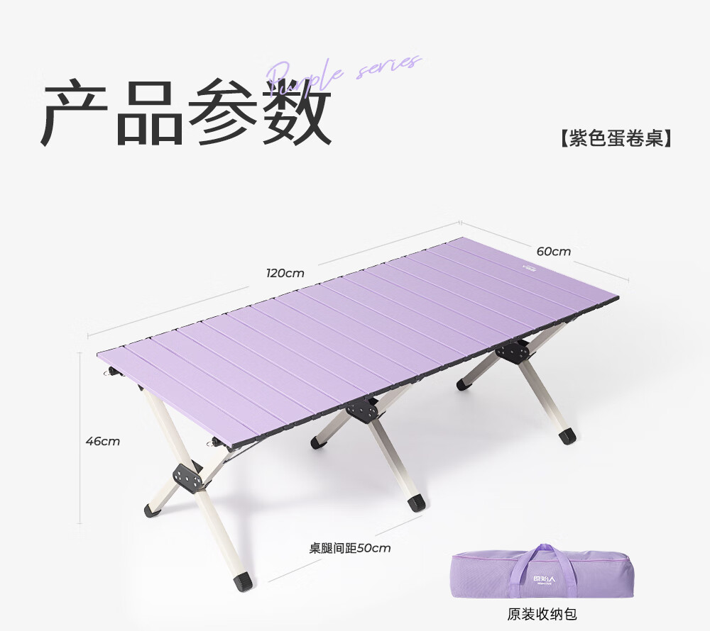 原始人蛋卷桌露营桌椅户外折叠便携式野餐全套装备新款桌椅套装野营摆摊 120cm薄雾紫+经典款月亮椅*4