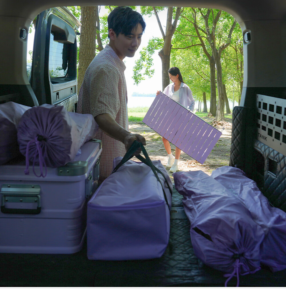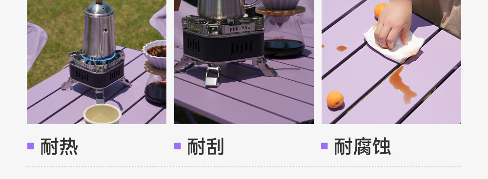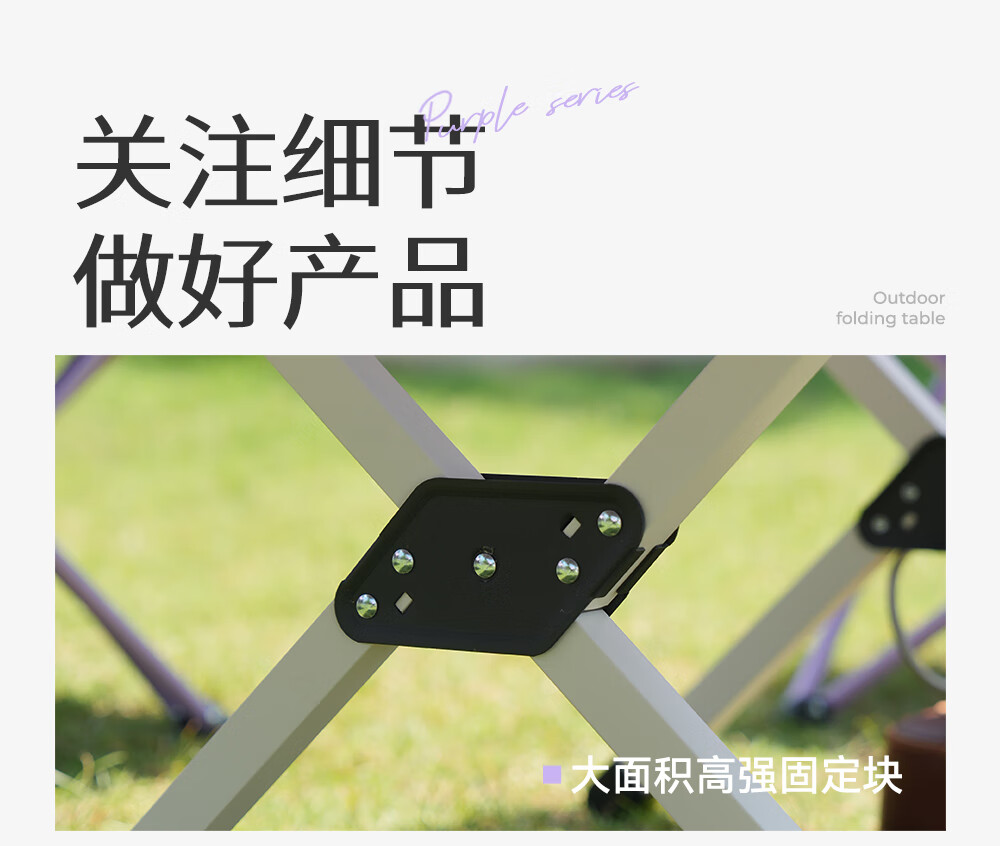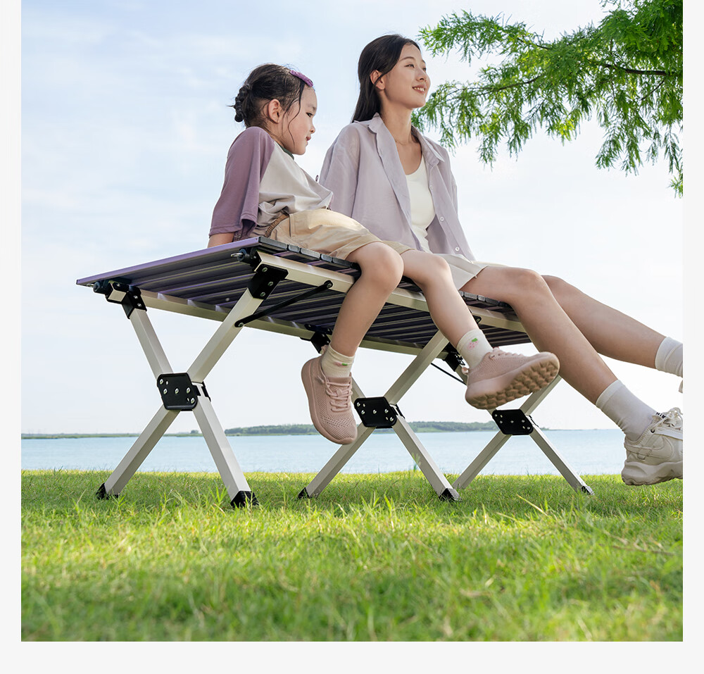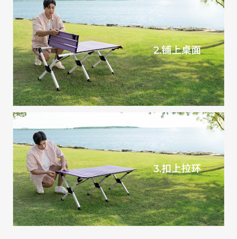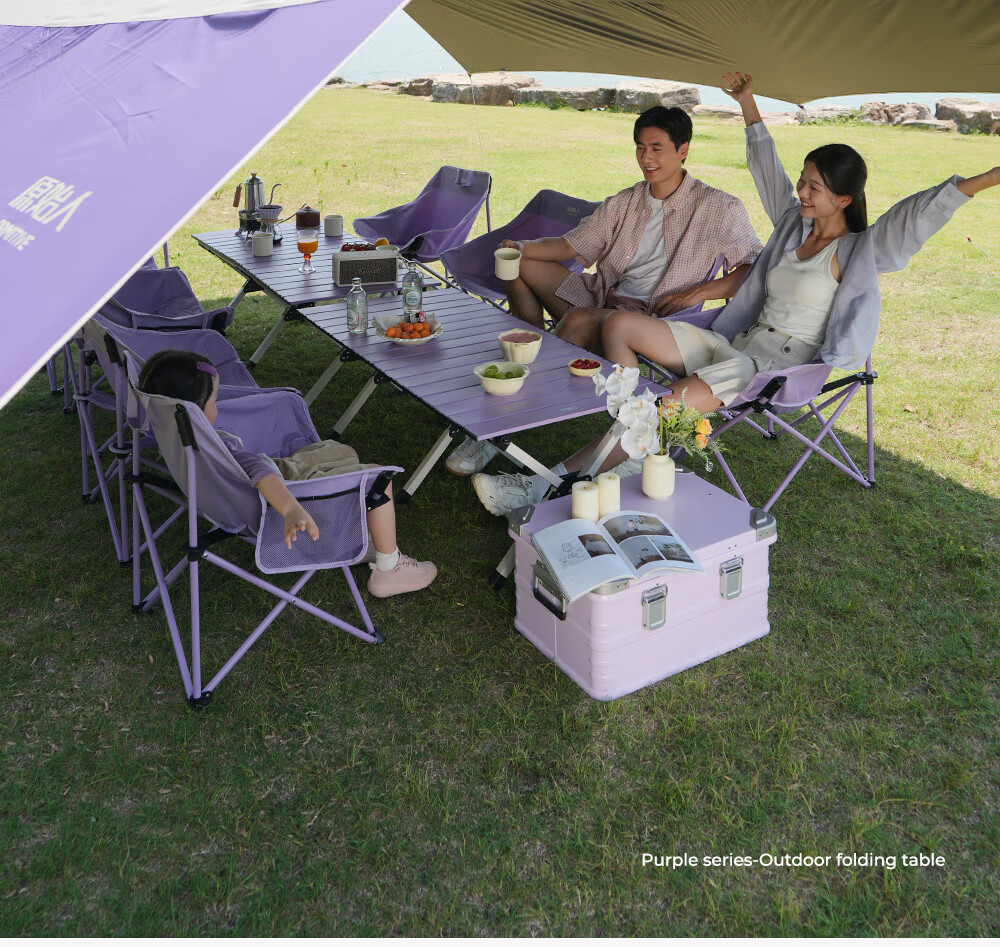 原始人蛋卷桌露营桌椅户外折叠便携式野餐全套装备新款桌椅套装野营摆摊 120cm薄雾紫+经典款月亮椅*4